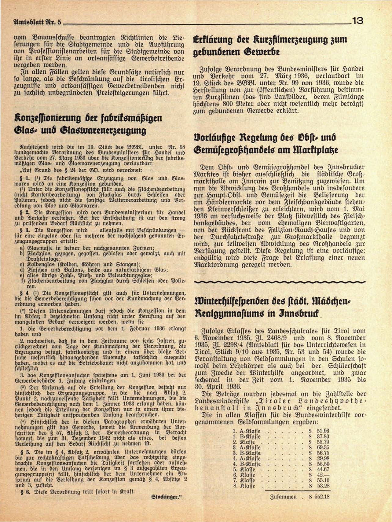 Verkehr vom 27. März 1936 über die KonzesfionierNig der fabriksmäßigen Glas- und Glaswarenerzeugung verlautbart: