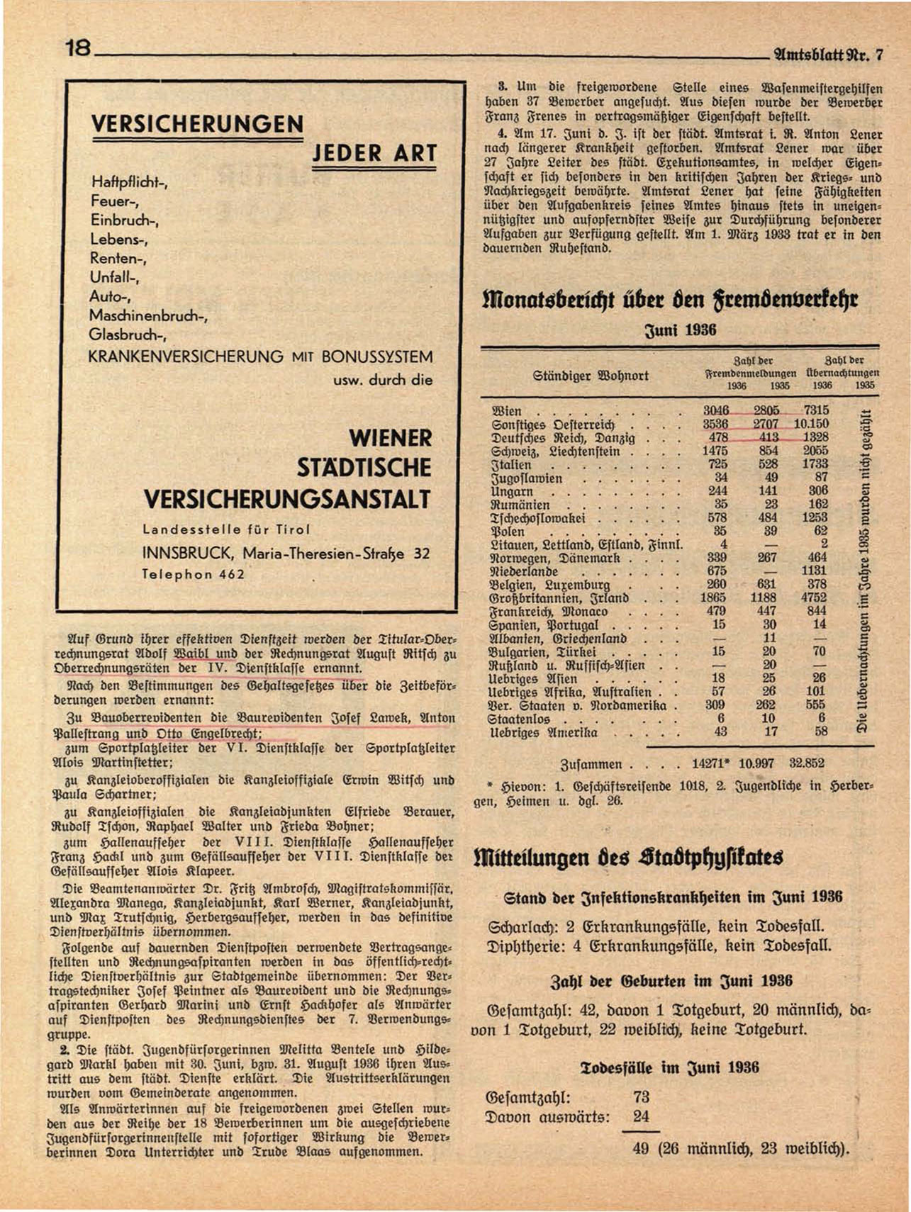 Folgende auf dauernden Dienstposten verwendete Vertragsangestellten und Rechnungsafpiranten werden in das öffentlich-rechtliche Dienstverhältnis zur Stadtgemeinde übernommen: Der Vertragstechniker Josef Peintner als Baurevident und die Rechnungsaspiranten Gerhard Marini und Ernst Hackhofer als Anwärter