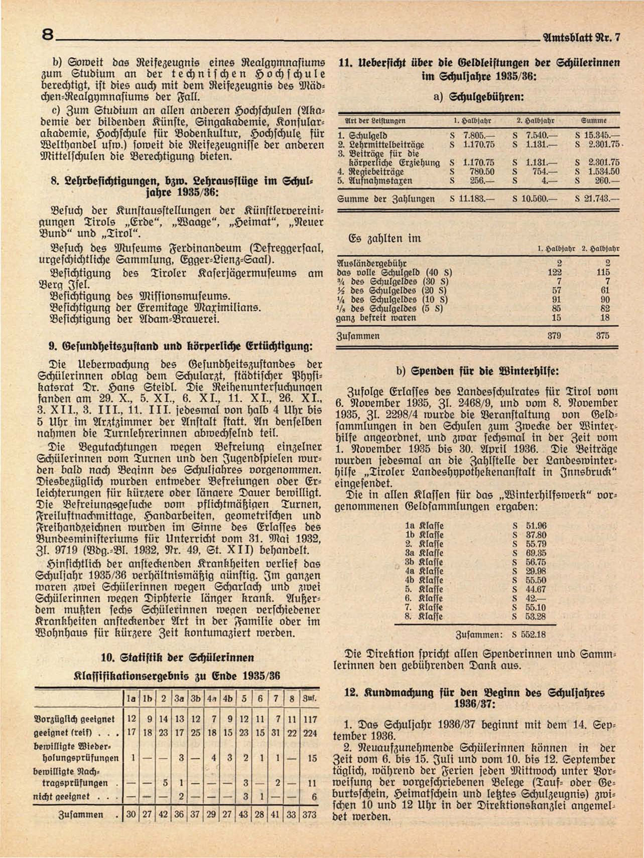 1935, Zl. 2298/4 wurde die Veranstaltung von Geldsammlungen in den Schulen zum Zwecke der Winter^