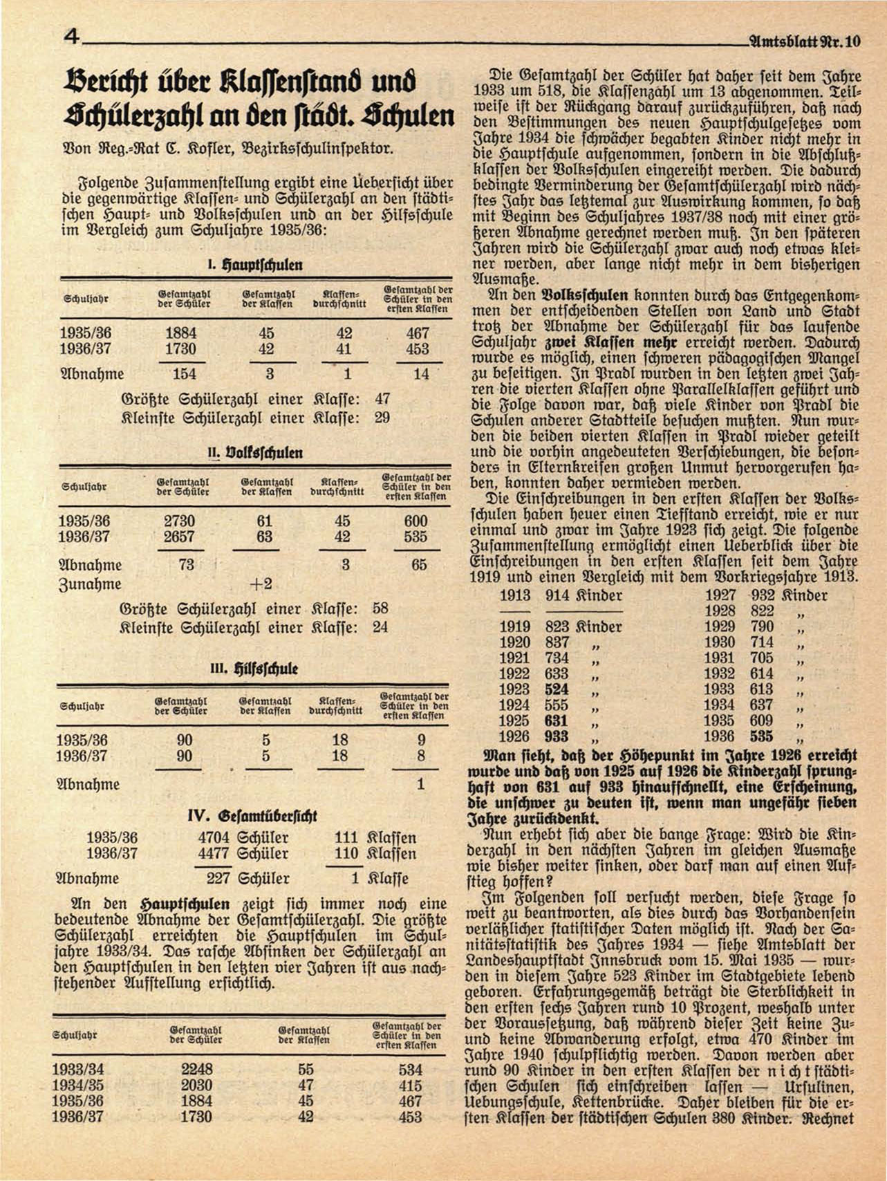 1933 um 518, die Klassenzähl um 13 abgenommen. Teilweise ist der Rückgang darauf zurückzuführen, daß nach