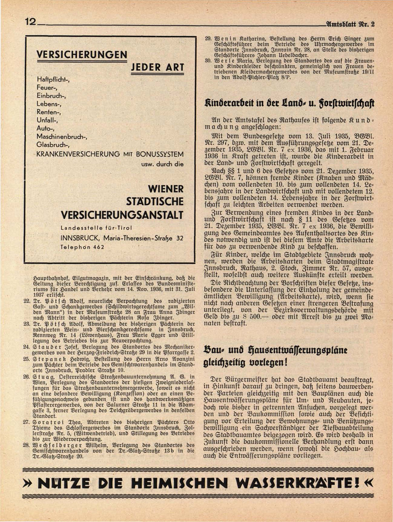 Innsbruck, Rathaus, 2. Stock, Zimmer Nr. 57, ausgestellt, woselbst auch weitere Auskünfte erteilt werden.