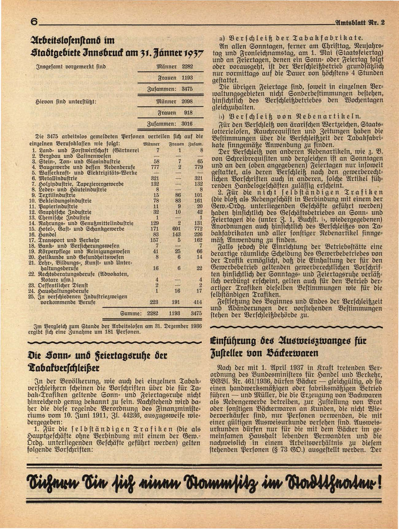 I n der Bevölkerung, wie auch bei einzelnen Tabakverschleißern scheinen die Vorschriften über die für Tabak-Trafiken geltende Sonn- und Feiertagsruhe nicht