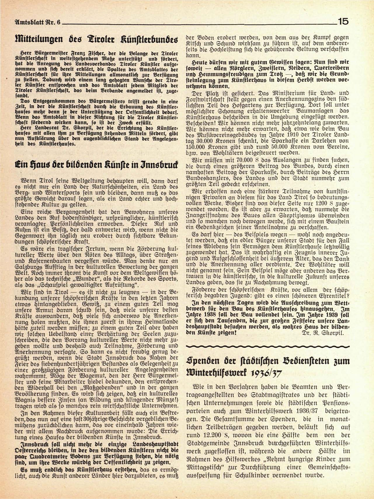 zu stellen. Dadurch wird einem lang gehegten Wunsche der Tiroler Künstler entsprochen und das Amtsblatt jedem Mitglied der
