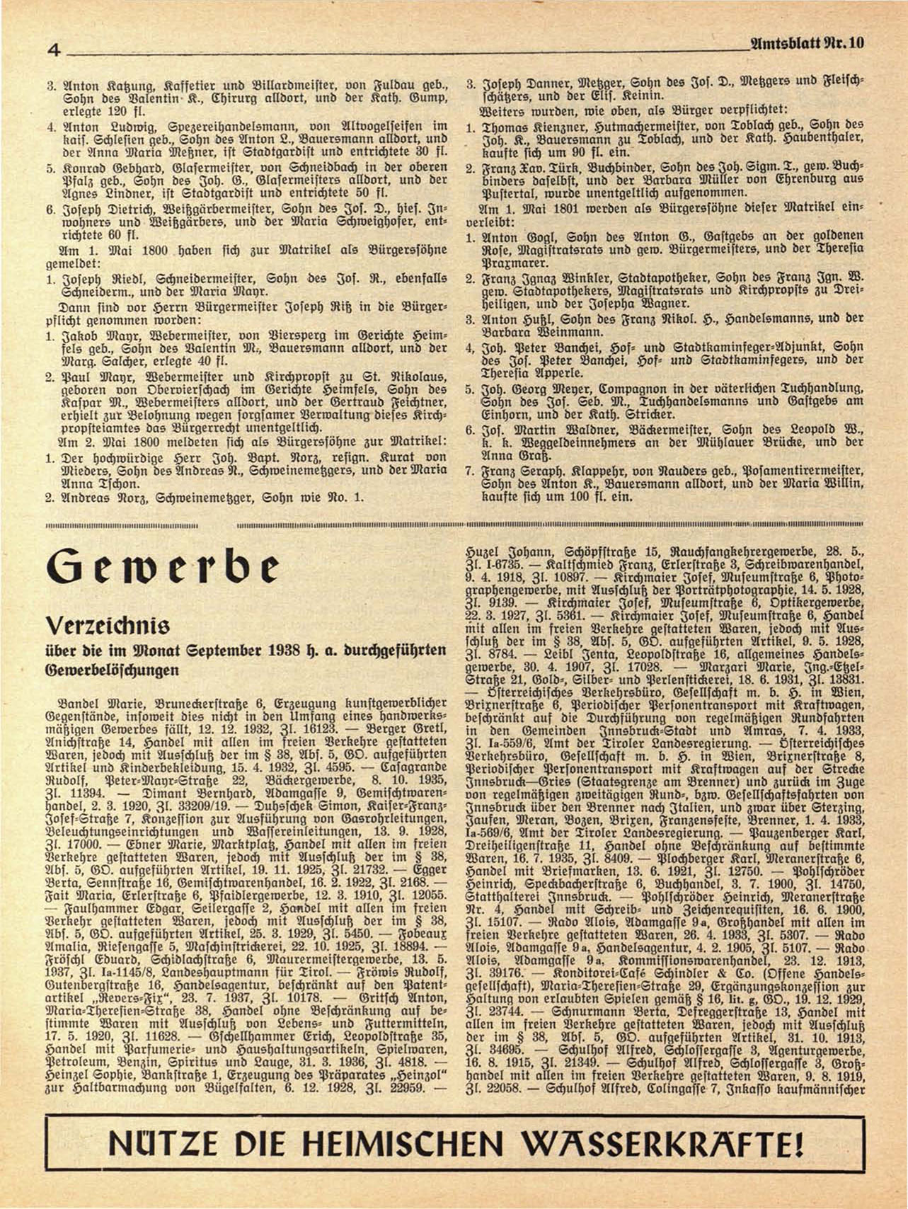 Rudolf. Peter-Mayr-Ttraße 22, Väckergewerbe, 8. 10. 1935,