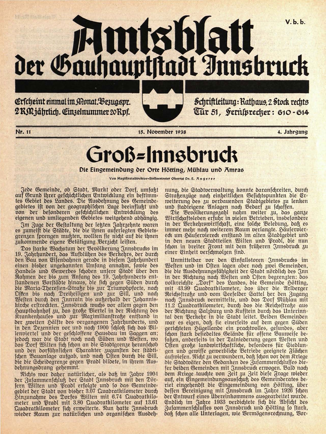 auf, ein Eingemeindungsausschuß des Gemeinderates beriet eingehendst die Eingemeindung von Hötting, über