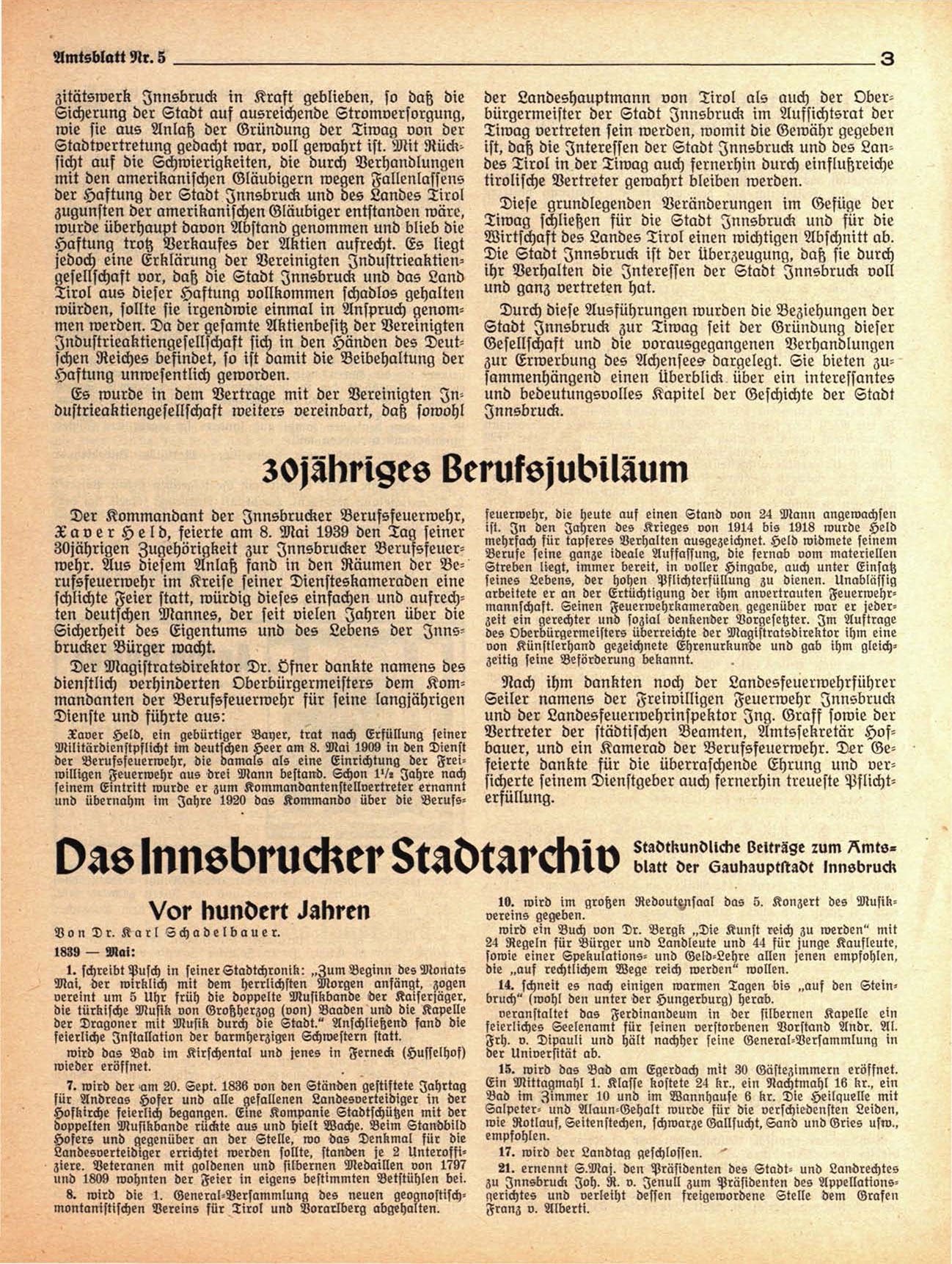 30jährigen Zugehörigkeit zur Innsbrucker Berufsfeuerwehr. Aus diesem Anlaß fand in den Räumen der Verufsfeuerwehr im Kreife seiner Diensteskameraden eine