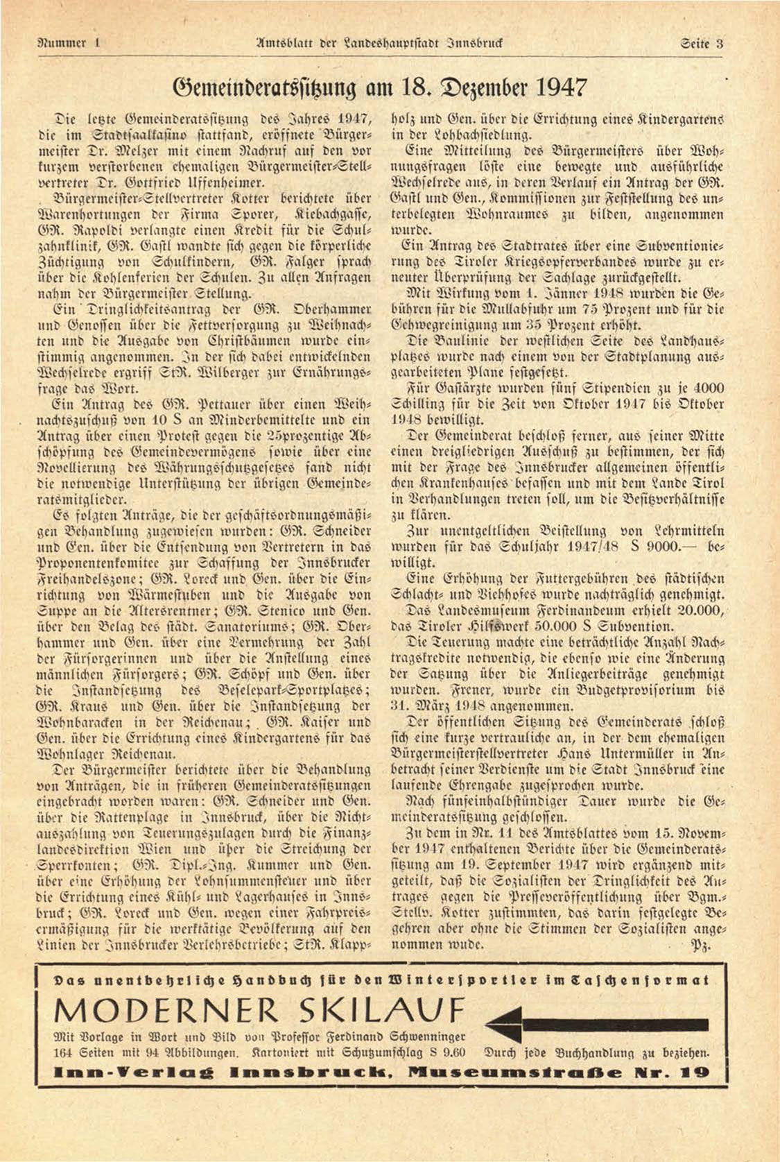 Gemeinderatssihung am 18. Dezember 1947