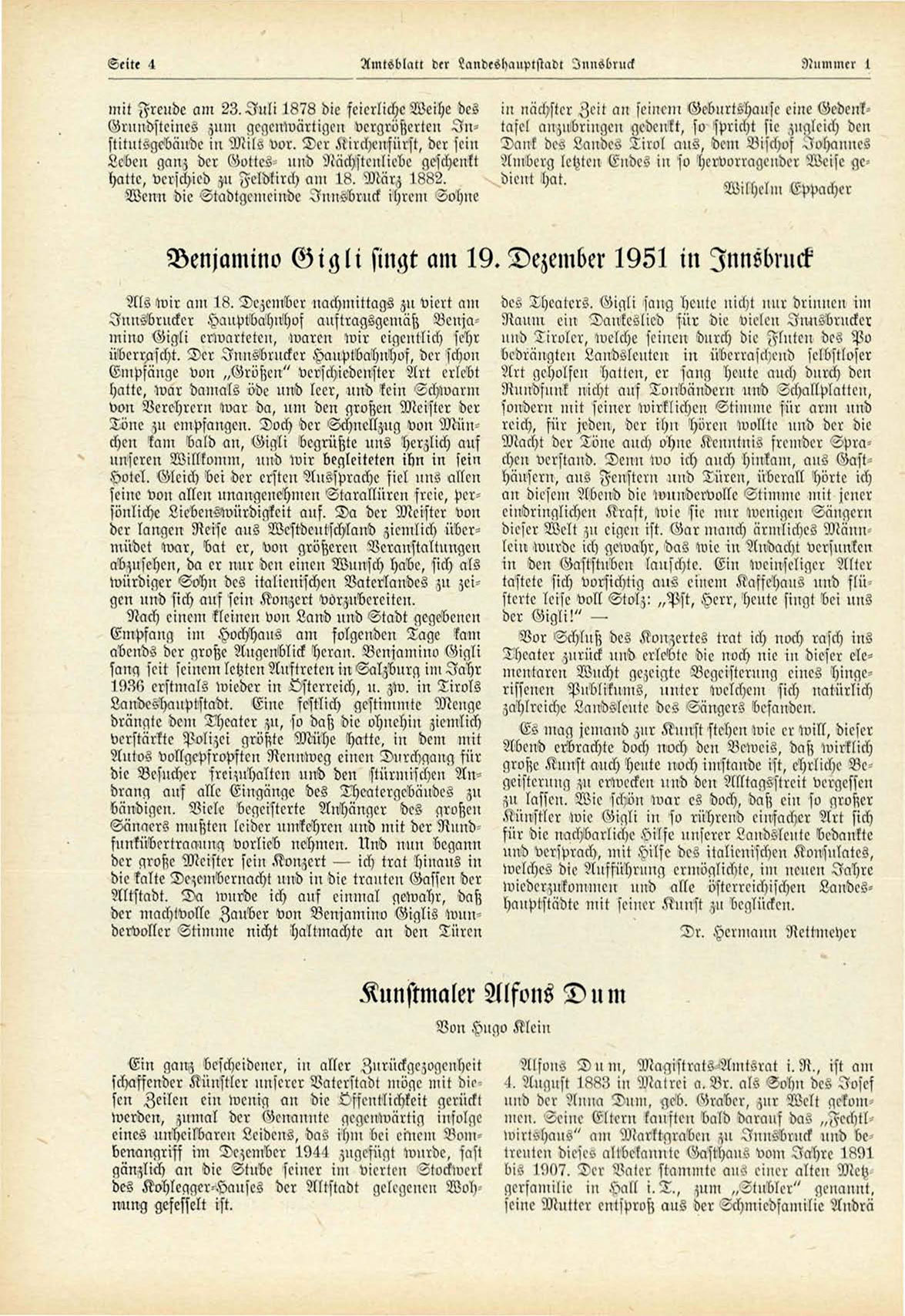 Iuusbruckcr Hauptbal)ichof anftragsgculäß Vcujamiuo Gigli cnoartctcn, loarcn wir cigcntlich fohr