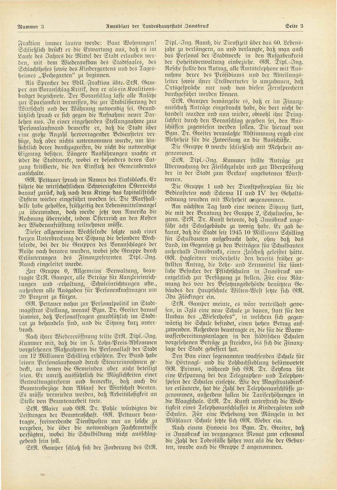 die mit der Beratung der Gruppe ^, Schulwesen, begann. S t N . D r . Knnst betonte, daß Innsbruck ungefähr acht Schnlgcbäude zu w m i g habe, (kv gab bekannt, daß die ^tadt seit 1945 10 Millionen Schilling