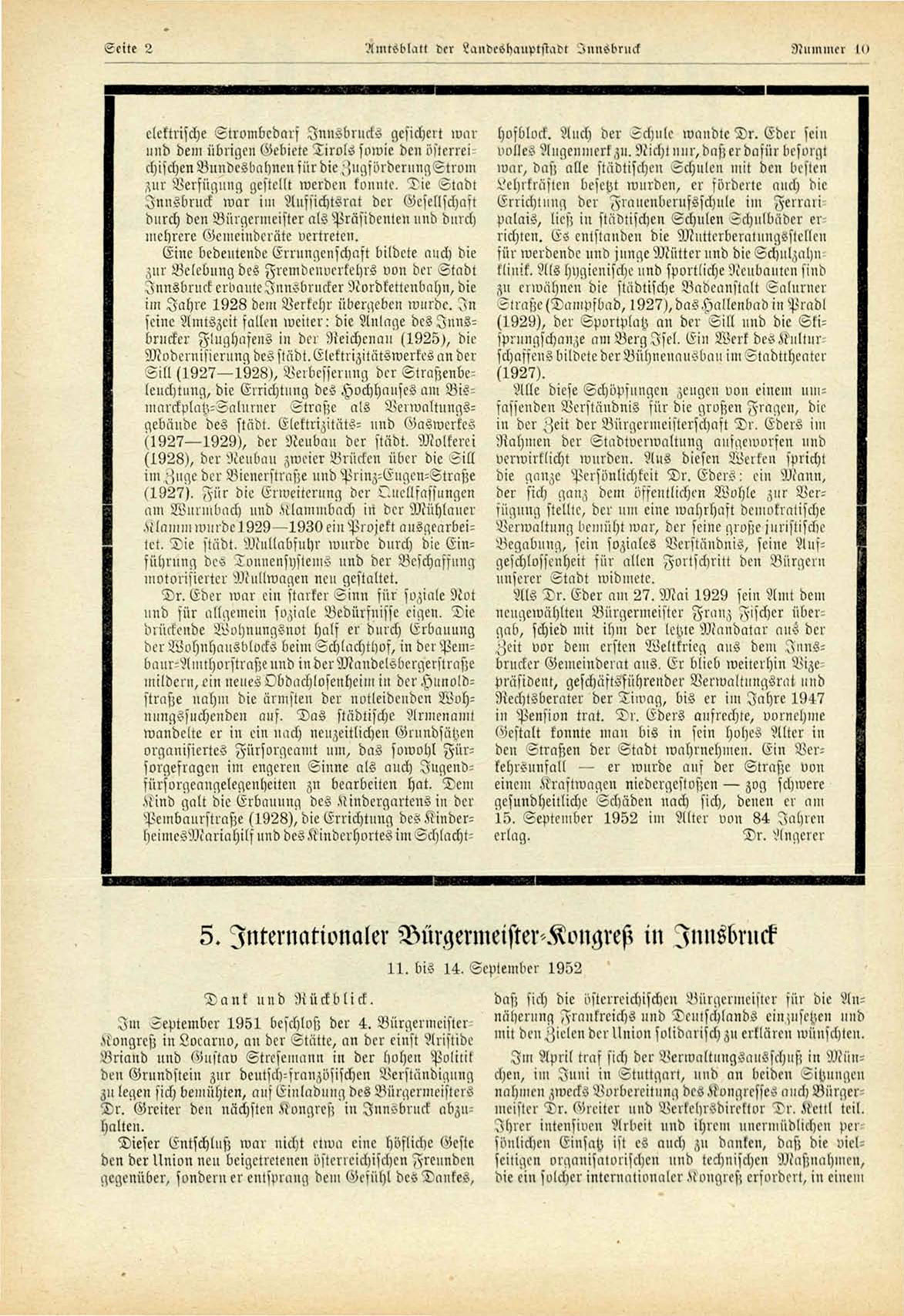 D r . Greiter deu nächsten Kongreß in Innsbruck abzu