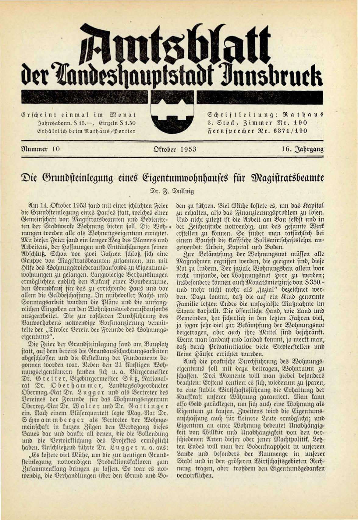 Die Grundsteinlegung eines Eigentumwohnhauses für Magistratsbeamte