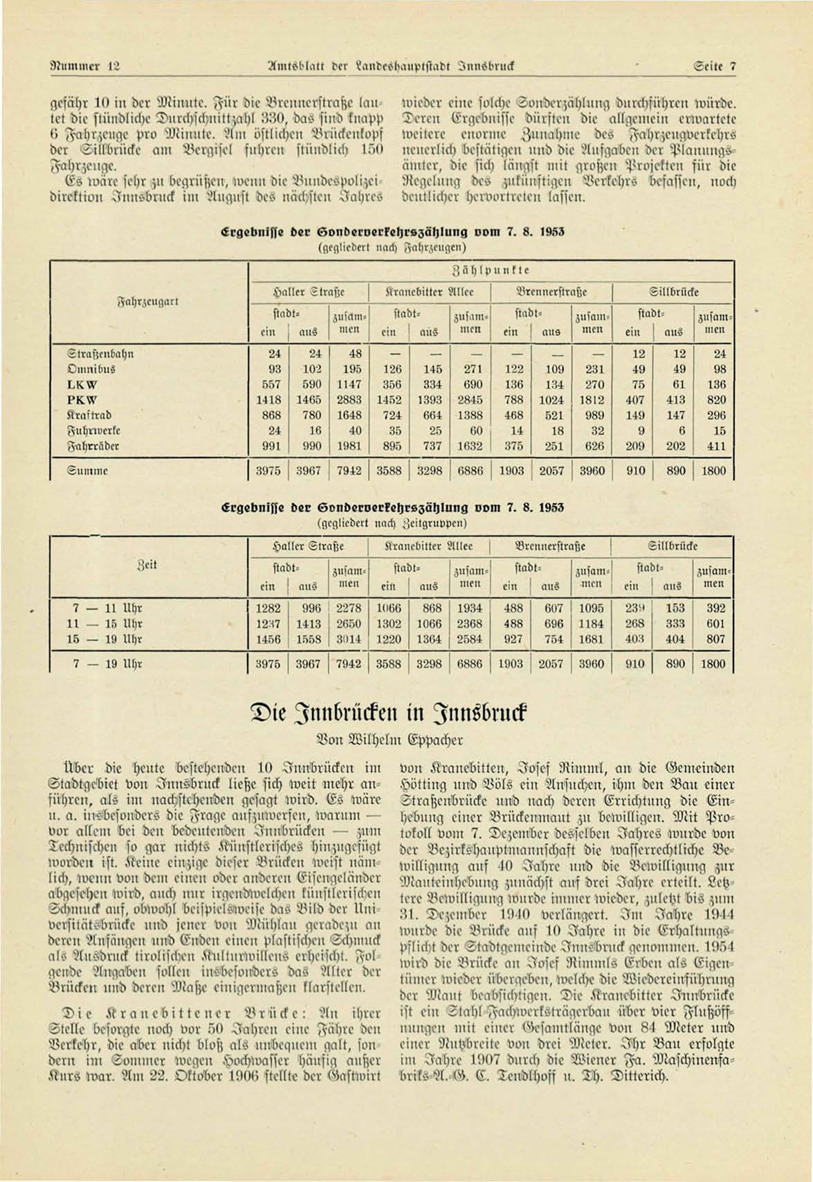 Ergebnisse der Sonderverkehrszählung vom 7. 8. 1953