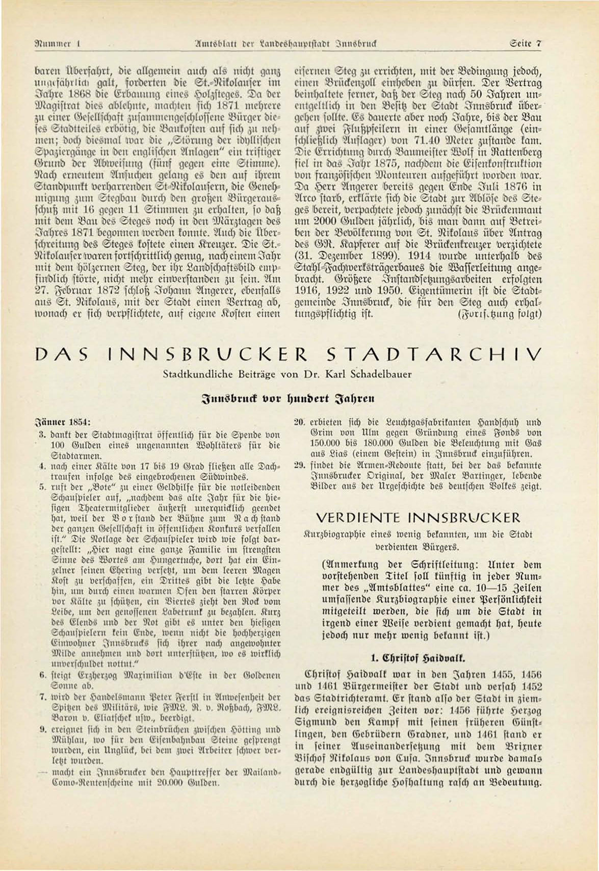 1910, 1922 und 1950. Eigentümerin ist die Stadtgemeinde Innsbruck, die für deli Steg auch erhaltnngspflichtig ist.