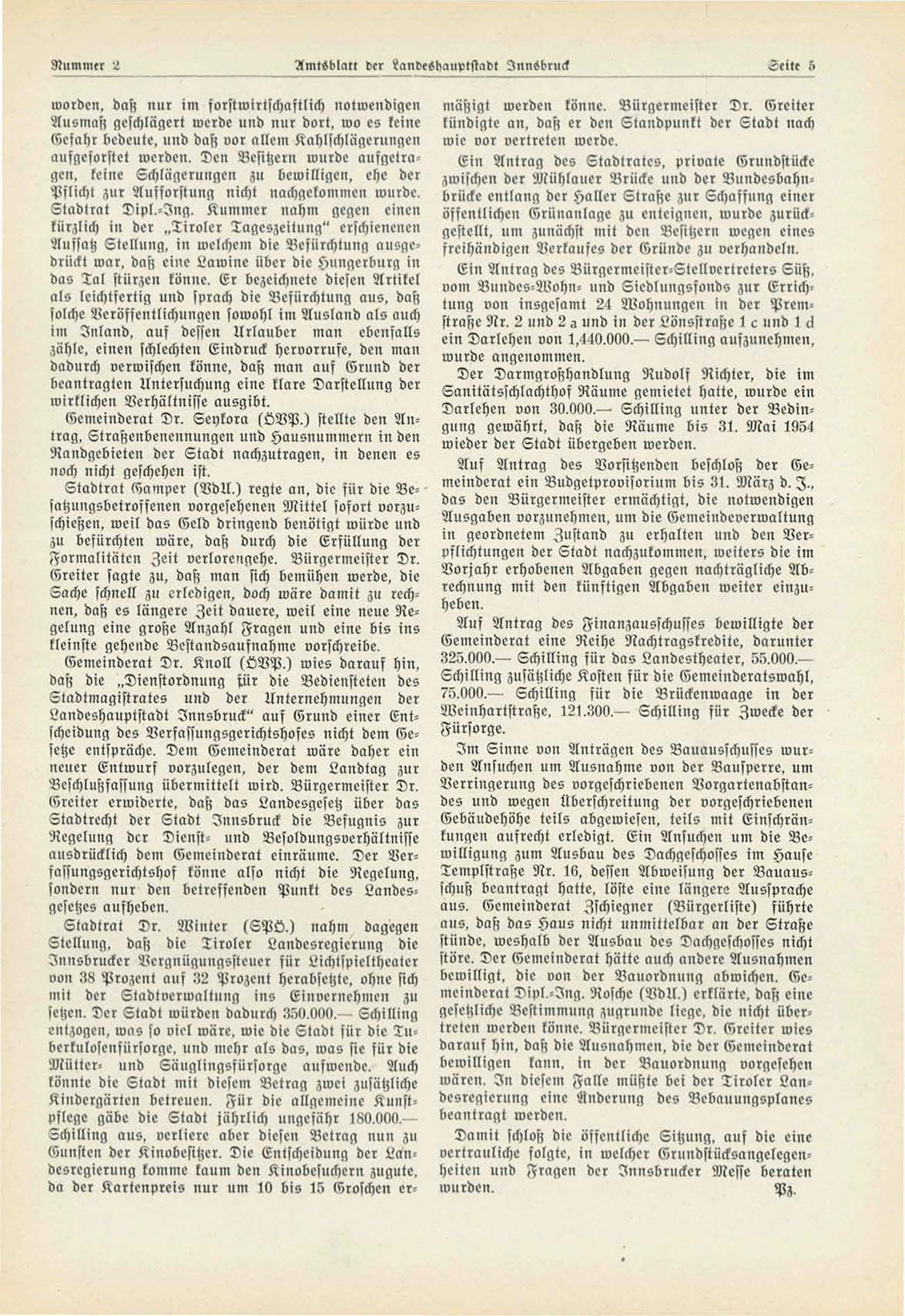 vertrauliche folgte, iu welcher Grundstiicksaugelegenheilen und Fragen der Innsbrncker Messe beraten