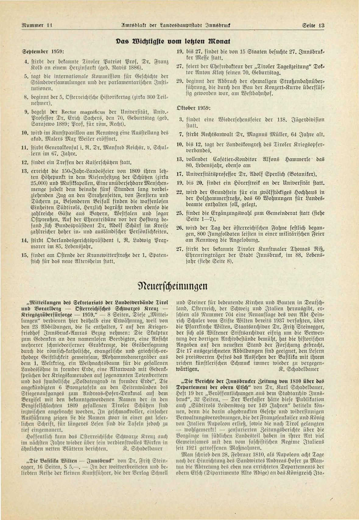Amtsblatt der iandesdauptstadt Innsbruck