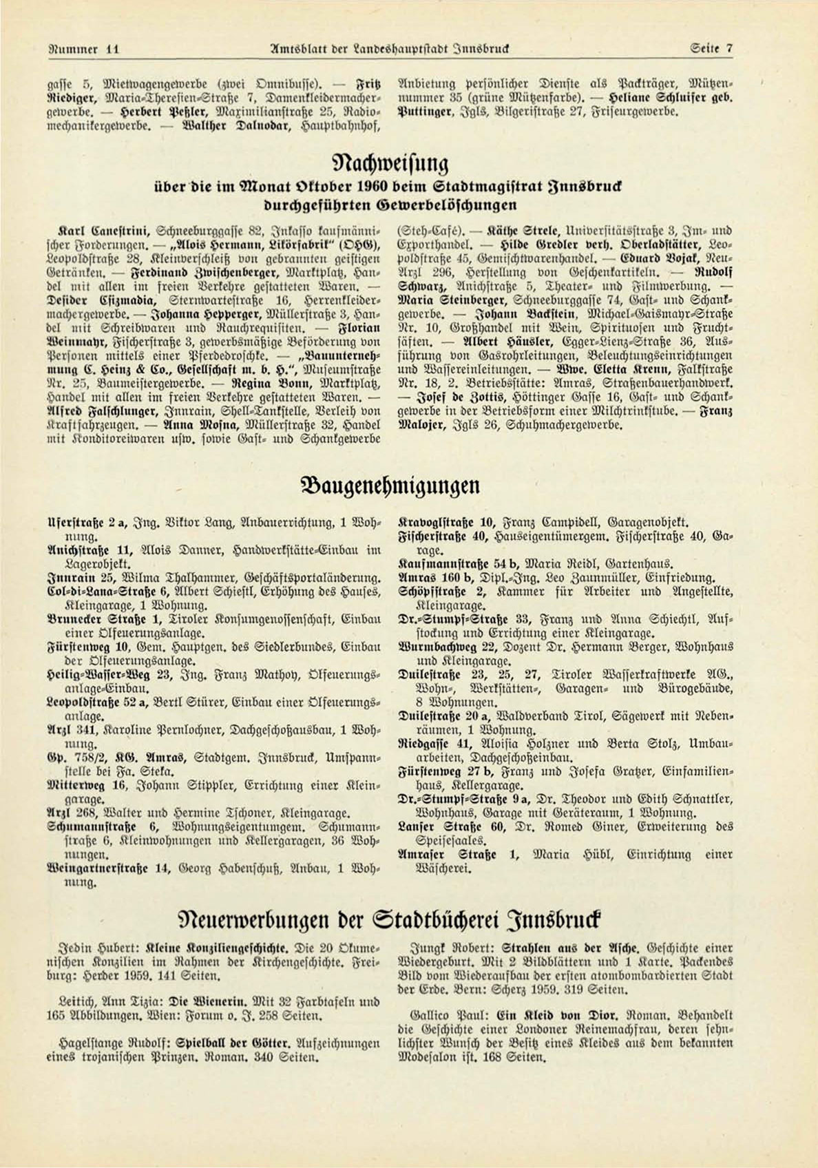 über die im Monat Oltoder l!Xil) beim Stadtmaqistrat Innsbruck