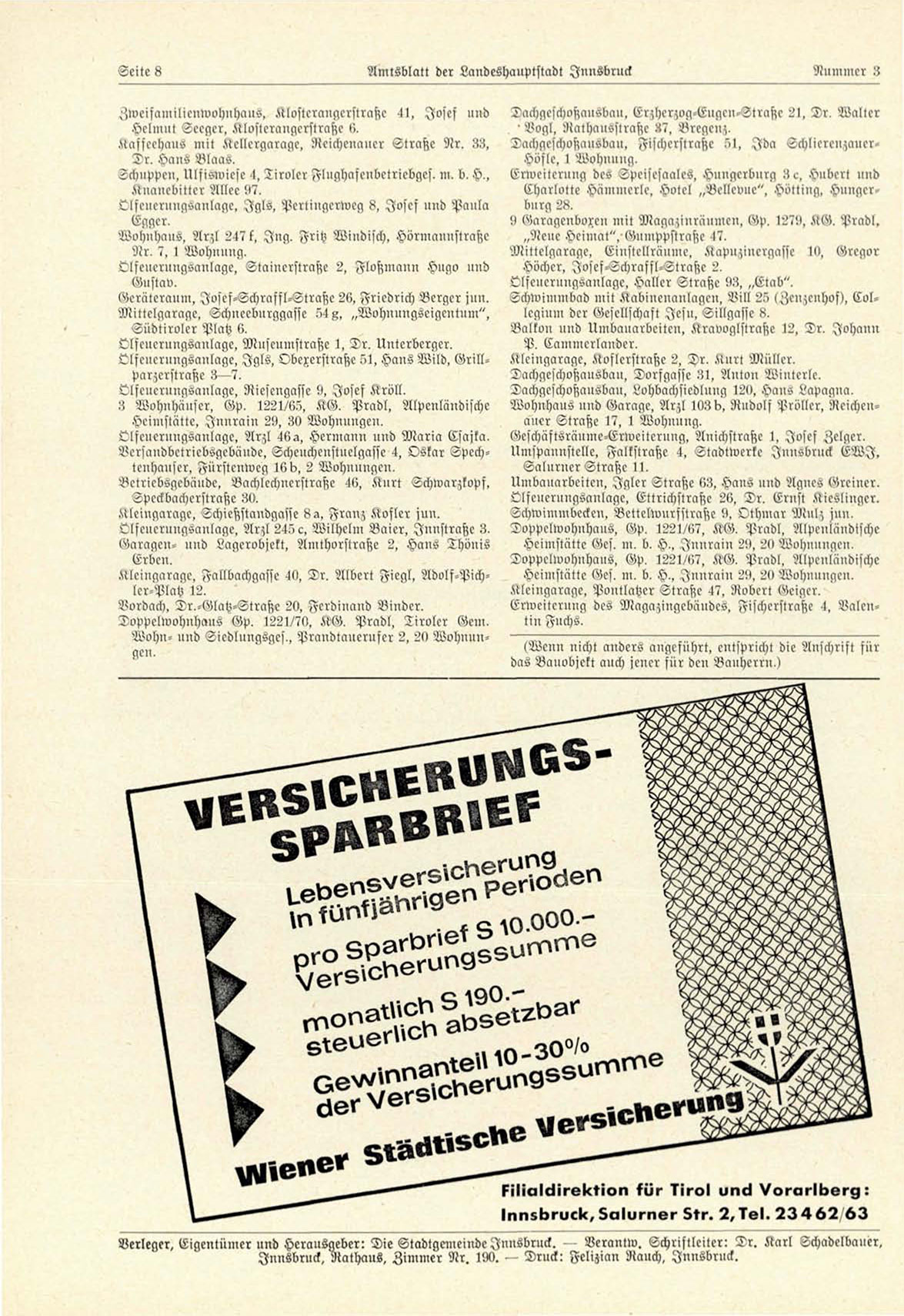 Verleger, Eigenlümer nnd Herausgeber: Die Stadtgemeindc Innsbruck.