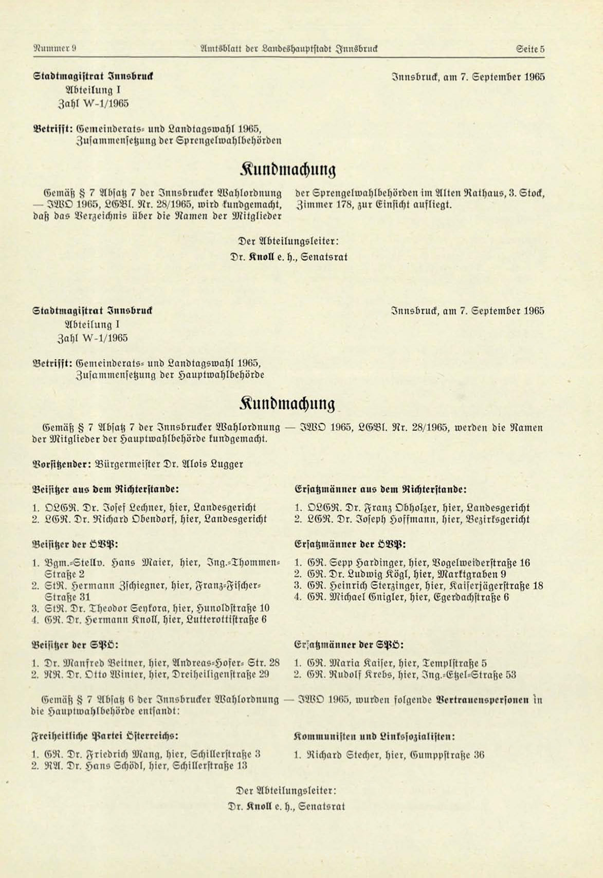 ^ 7 Absatz 7 der Innsbrucker Wahlordnung — I W O 1965, LGVl. Nr. 28/1965, werden die Namen