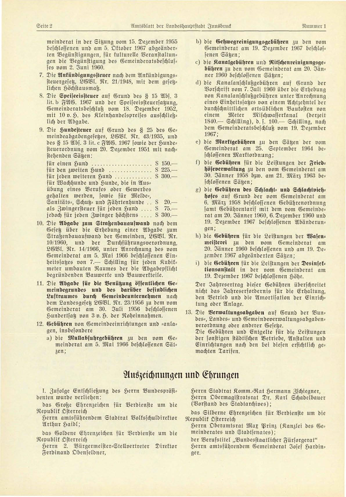 samt Gebührentarif mit dem vom Gemeinderat am 20. Jänner I960, L.Dezember 1960 und