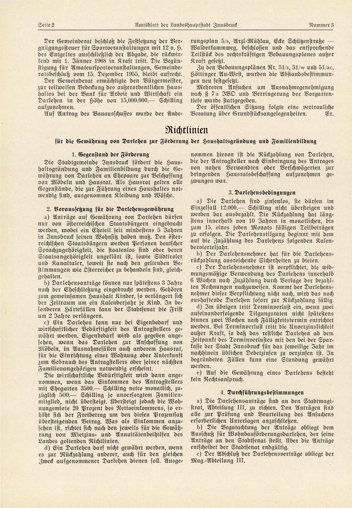 Die Stadtgemeinde Innsbruck fördert die Haushaltsgründung und Familienbildung durch die Gewährung uon Darlehen an Ehepaare zur Beschaffung