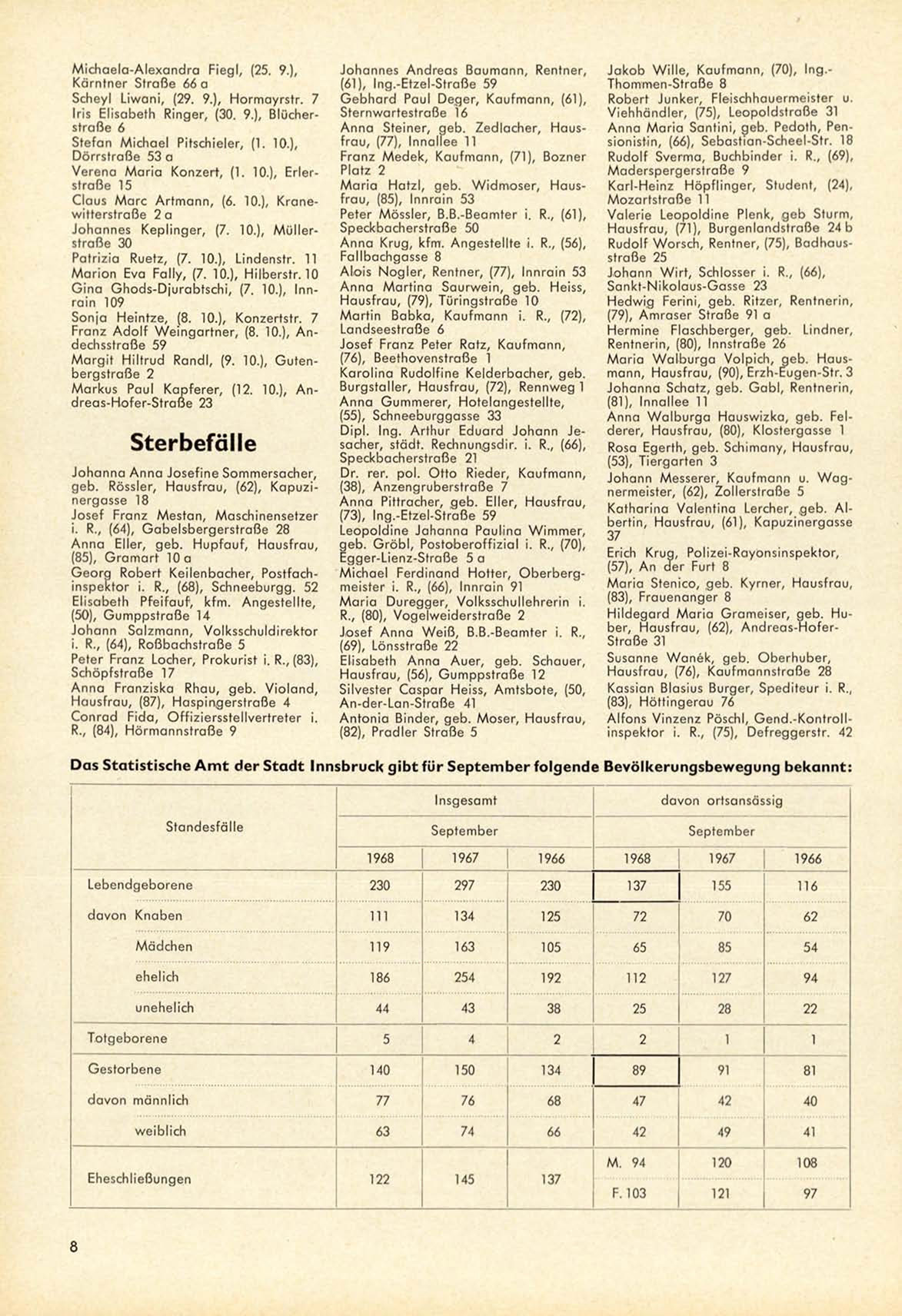 Das Statistische Amt der Stadt Innsbruck gibt für September folgende Bevölkerungsbewegung bekannt: