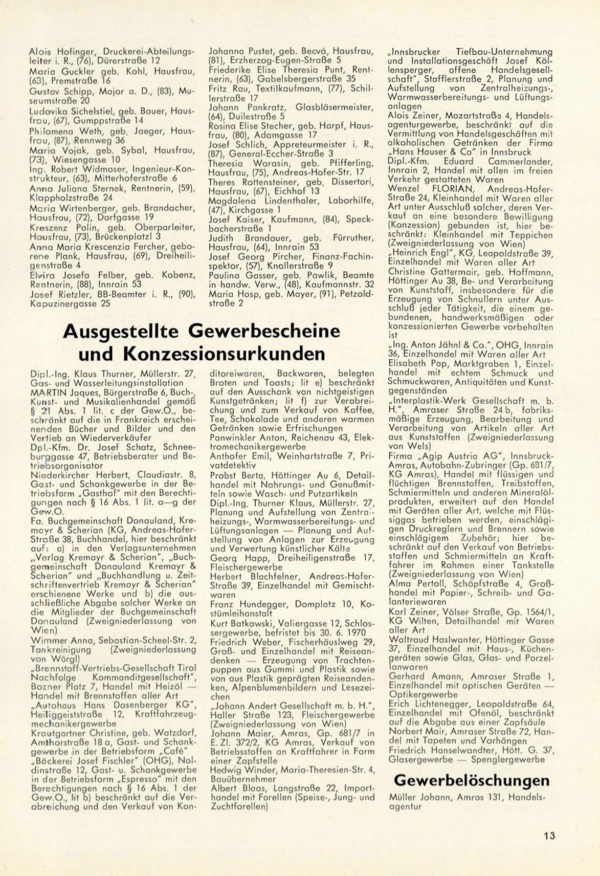 Kurt B a t k o w s k i , V a l i e r g a s s e 12, S c h l o s s e r g e w e r b e , befristet bis 30. 6. 1970