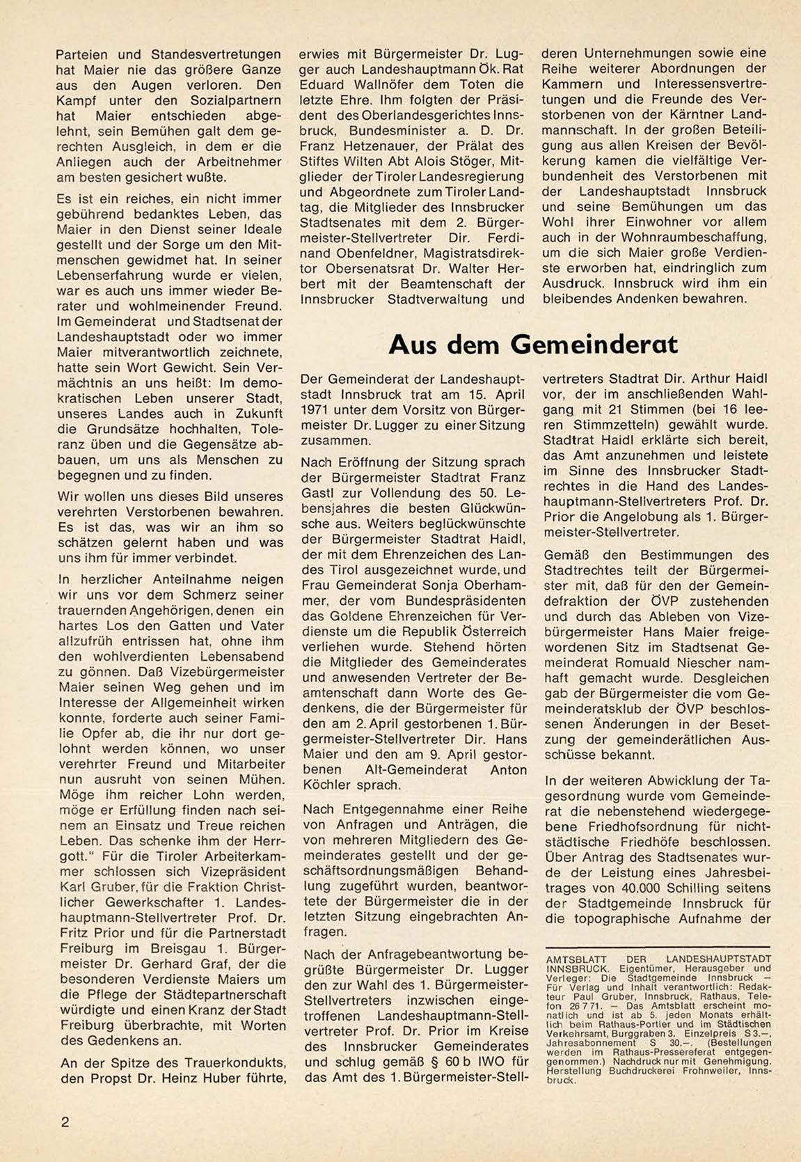 Für V e r l a g und Inhalt verantwortlich: Redakteur Paul G r u b e r , Innsbruck, Rathaus, T e l e f o n 26 7 71. — Das Amtsblatt erscheint monatlich und ist ab 5. jeden Monats erhältlich b e i m Rathaus-Portier und im Städtischen