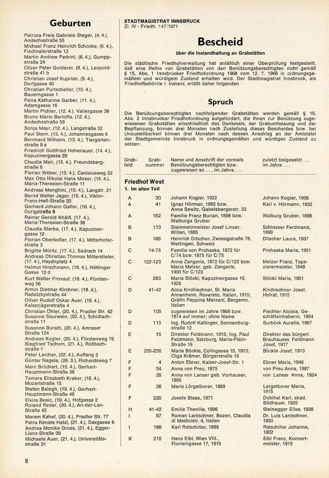 d e r S t a d t g e m e i n d e Innsbruck in o r d n u n g s g e m ä ß e n und w ü r d i g e n Z u s t a n d z u