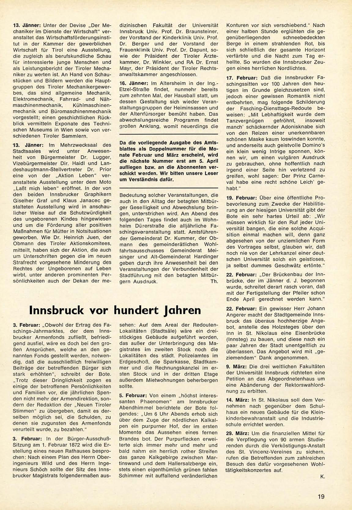 Da die vorliegende Ausgabe des Amtsblattes als Doppelnummer für die Monate Februar und März erscheint, wird