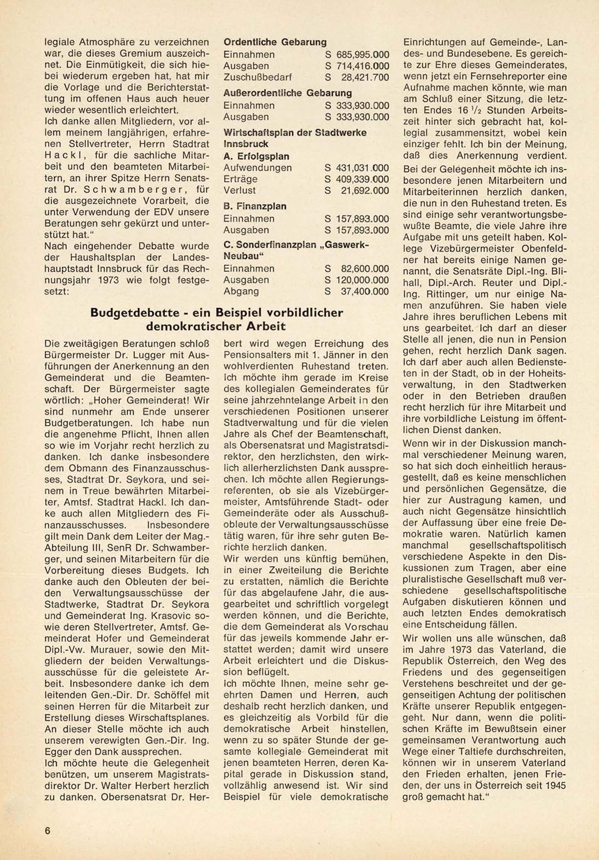 der H a u s h a l t s p l a n der L a n d e s hauptstadt Innsbruck für d a s R e c h nungsjahr 1973 wie folgt festgesetzt: