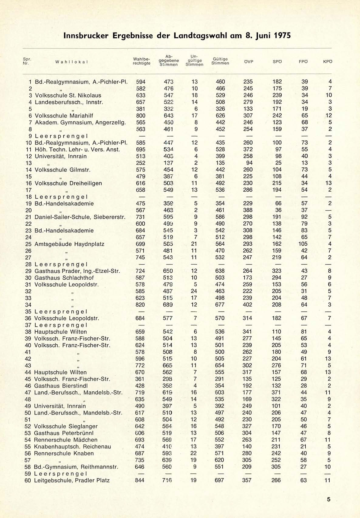 Innsbrucker Ergebnisse der Landtagswahl am 8. Juni 1975