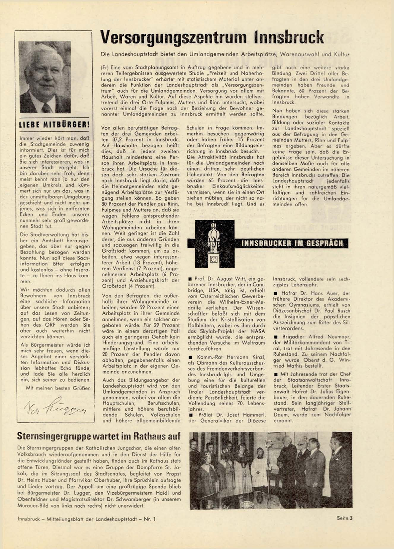vorerst e i n m a l die F r a g e nach d e r B e z i e h u n g der B e w o h n e r g e nannter U m l a n d g e m e i n d e n zu Innsbruck ermittelt w e r d e n sollte.