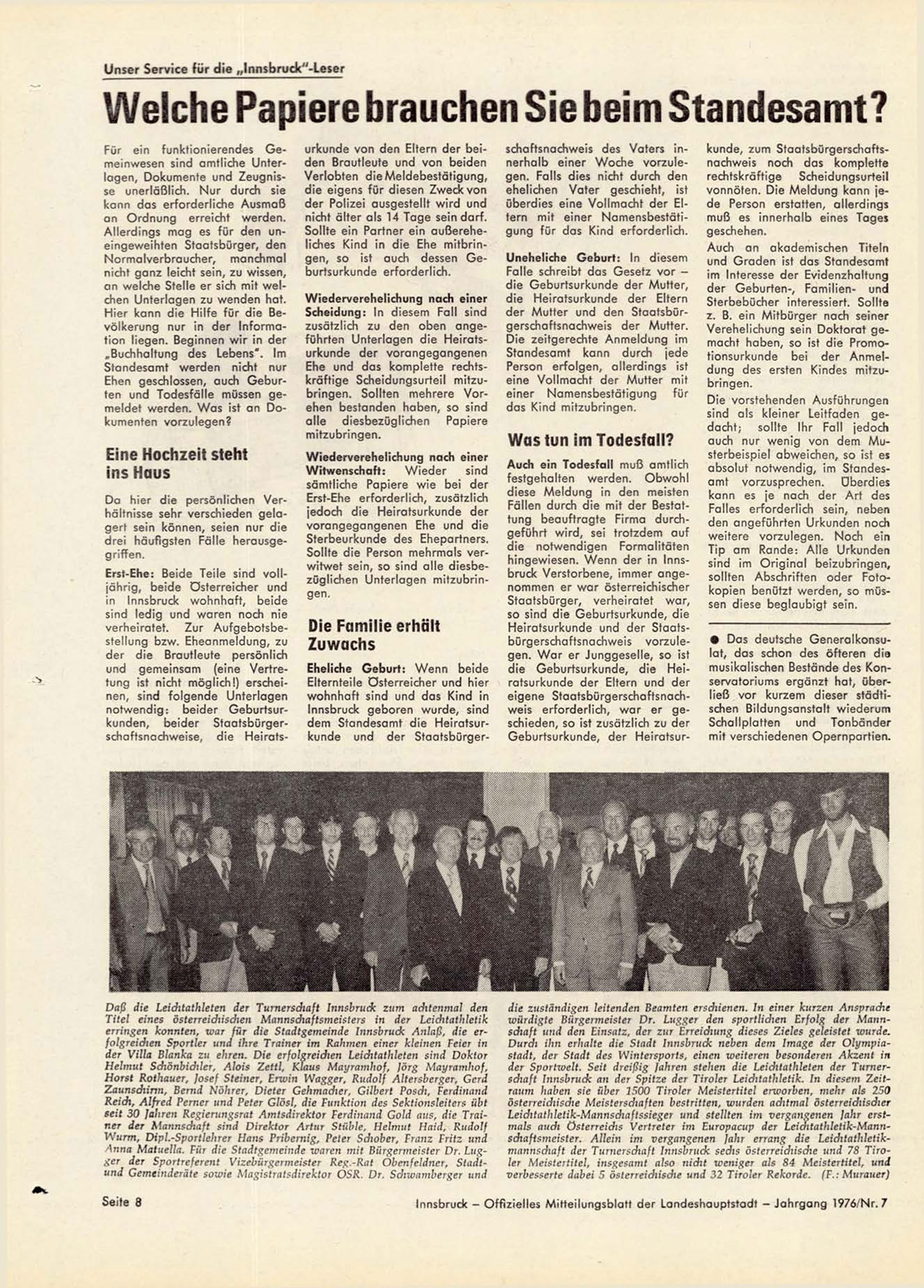 Innsbruck - Offizielles Mitteilungsblatt der Landeshauptstadt - Jahrgang 1976/Nr. 7