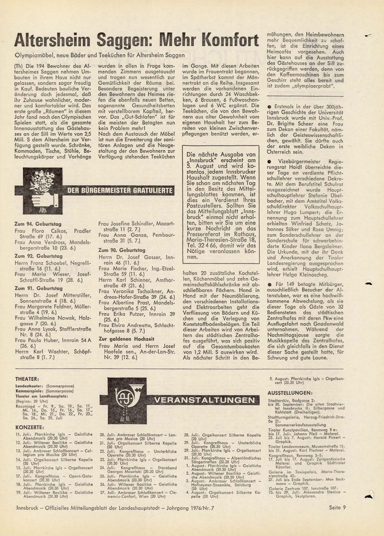 Innsbruck - O f f i z i e l l e s M i t t e i l u n g s b l a t t d e r L a n d e s h a u p t s t a d t - J a h r g a n g 1976/Nr. 7