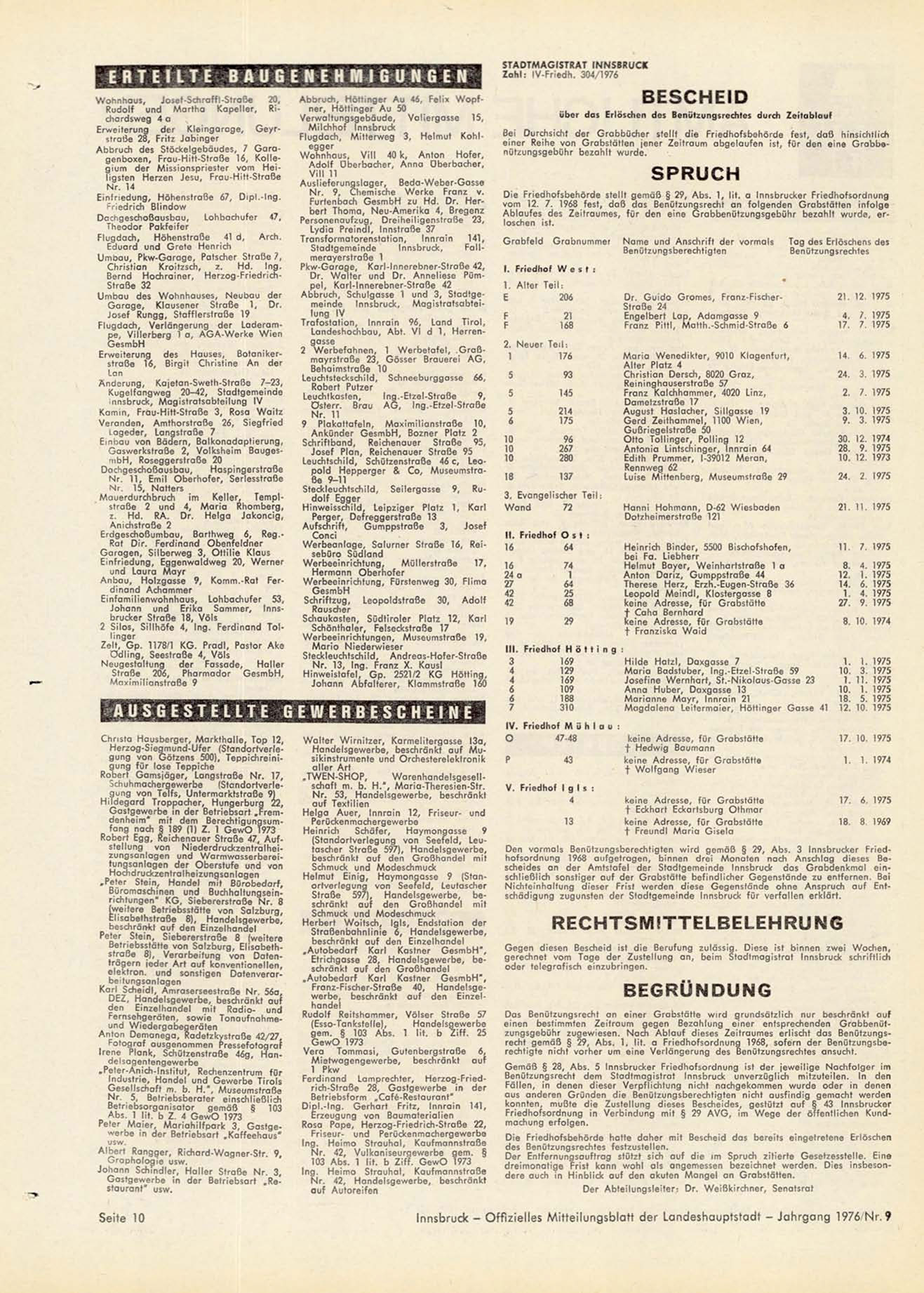 Innsbruck - Offizielles Mitteilungsblatt der Landeshauptstadt - Jahrgang 1976 Nr. 9