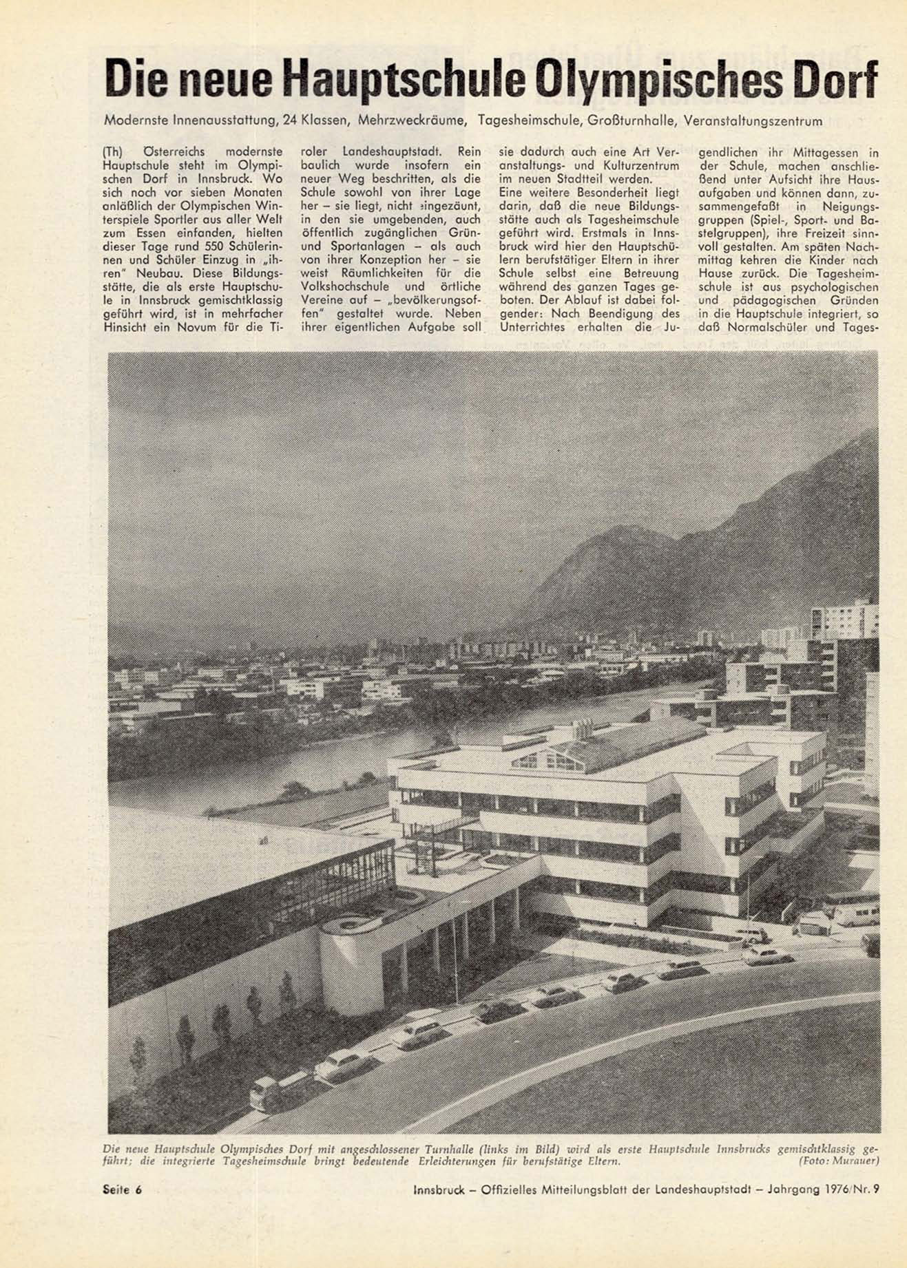 Hauptschule steht im O l y m p i schen D o r f in Innsbruck. W o