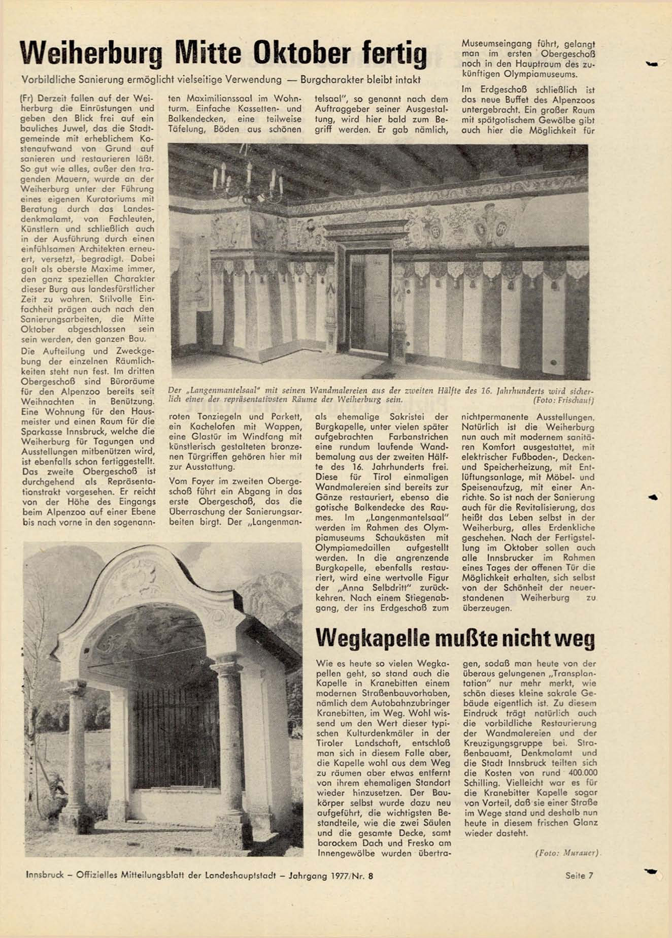 Innengewölbe wurden übertraInnsbruck - Offizielles Mitteilungsblatt der Landeshauptstadt - Jahrgang 1977/Nr. 8