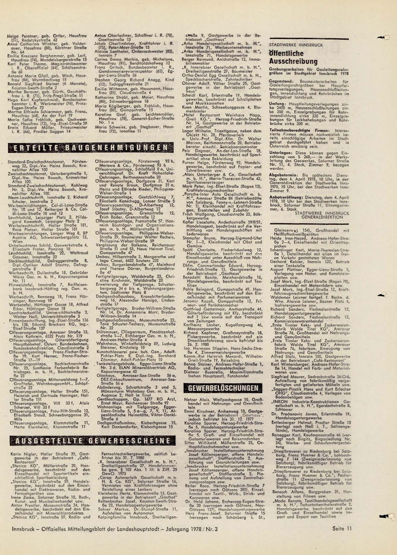 Innsbruck - Offizielles Mitteilungsblatt der Landeshauptstadt - Jahrgang 1978 / Nr. 3