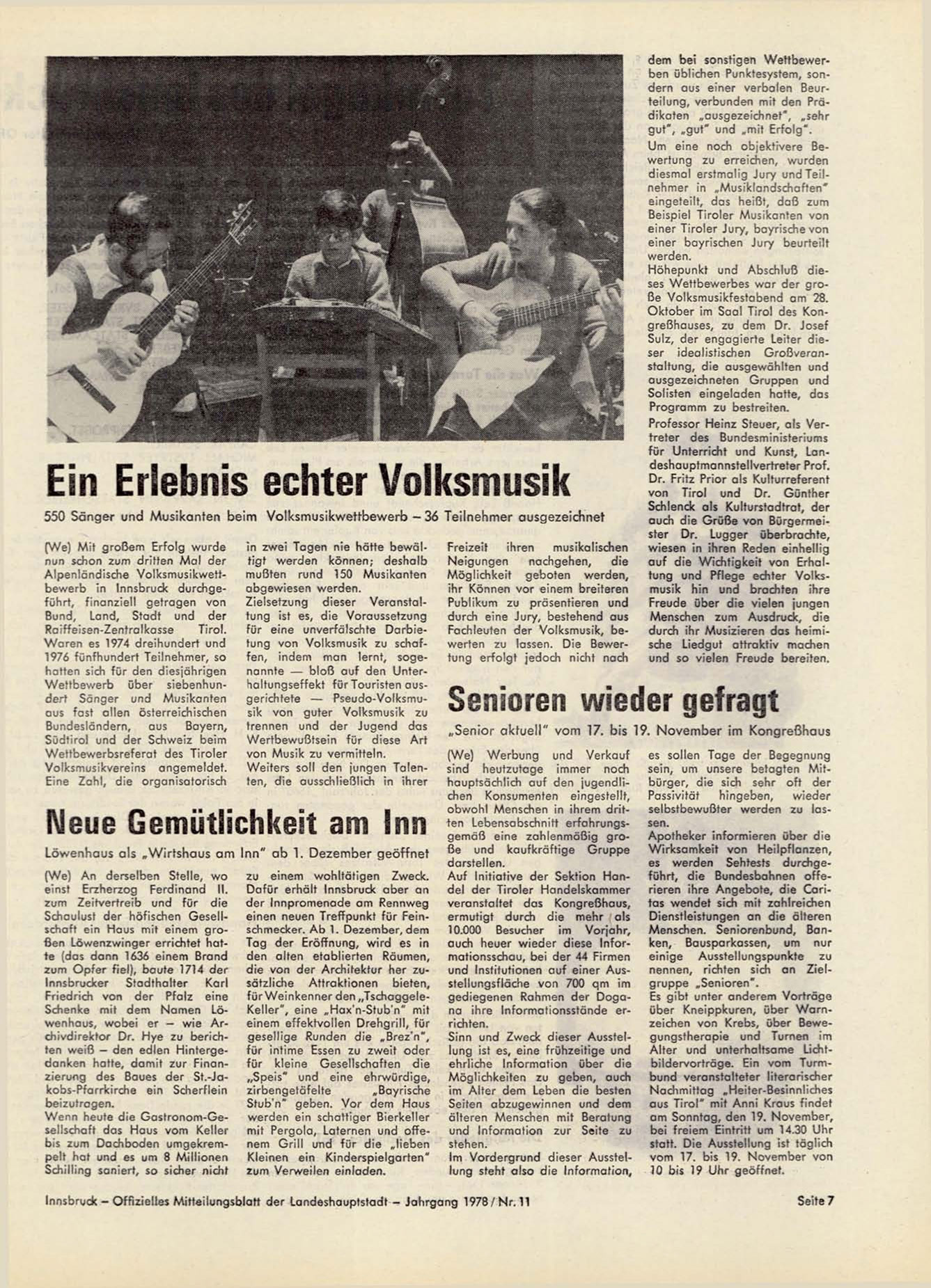 Innsbruck - Offizielles Mitteilungsblatt der Landeshauptstadt - Jahrgang 1978/Nr. 11