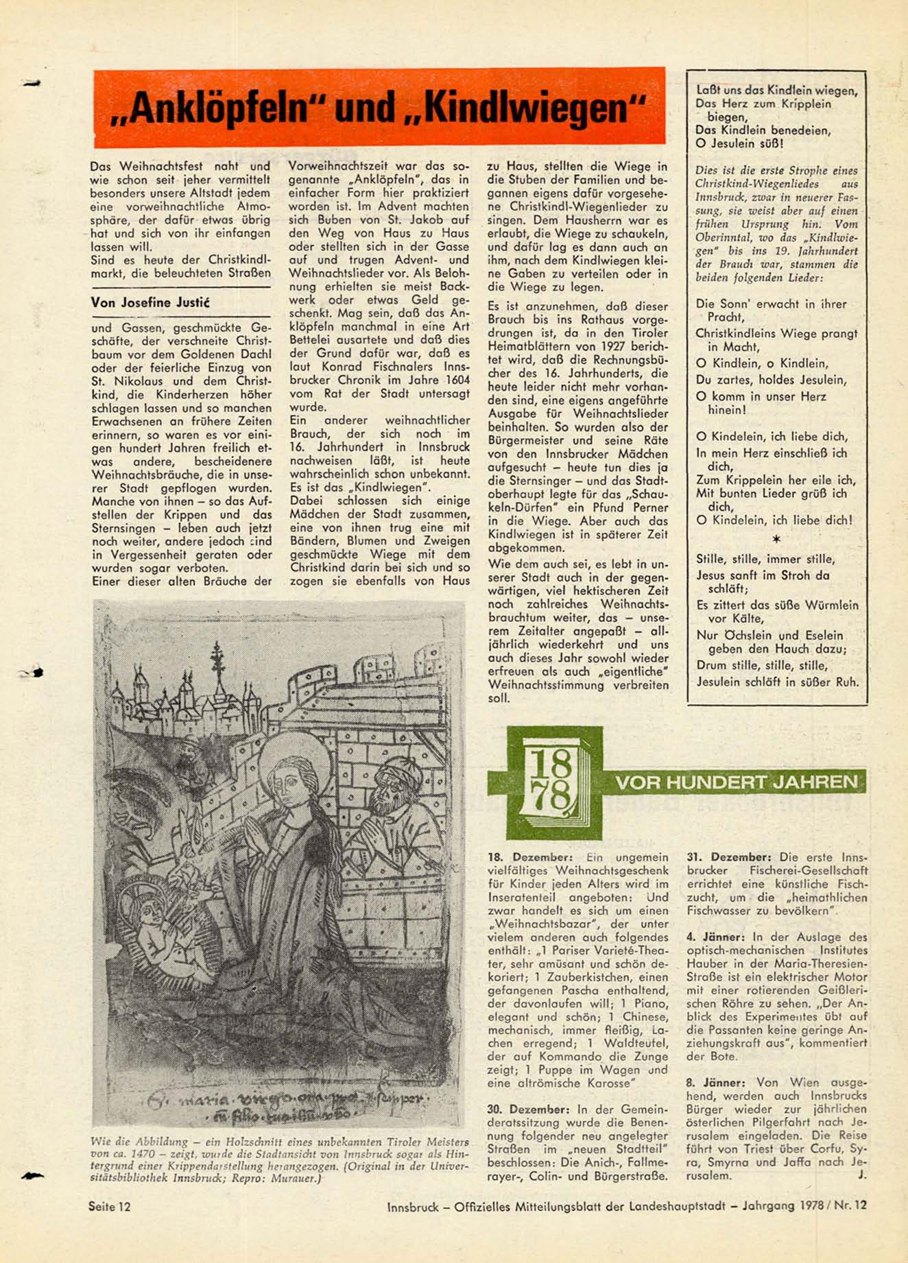 Innsbruck - O f f i z i e l l e s M i t t e i l u n g s b l a t t d e r L a n d e s h a u p t s t a d t - J a h r g a n g 1 9 7 8 / N r . 12