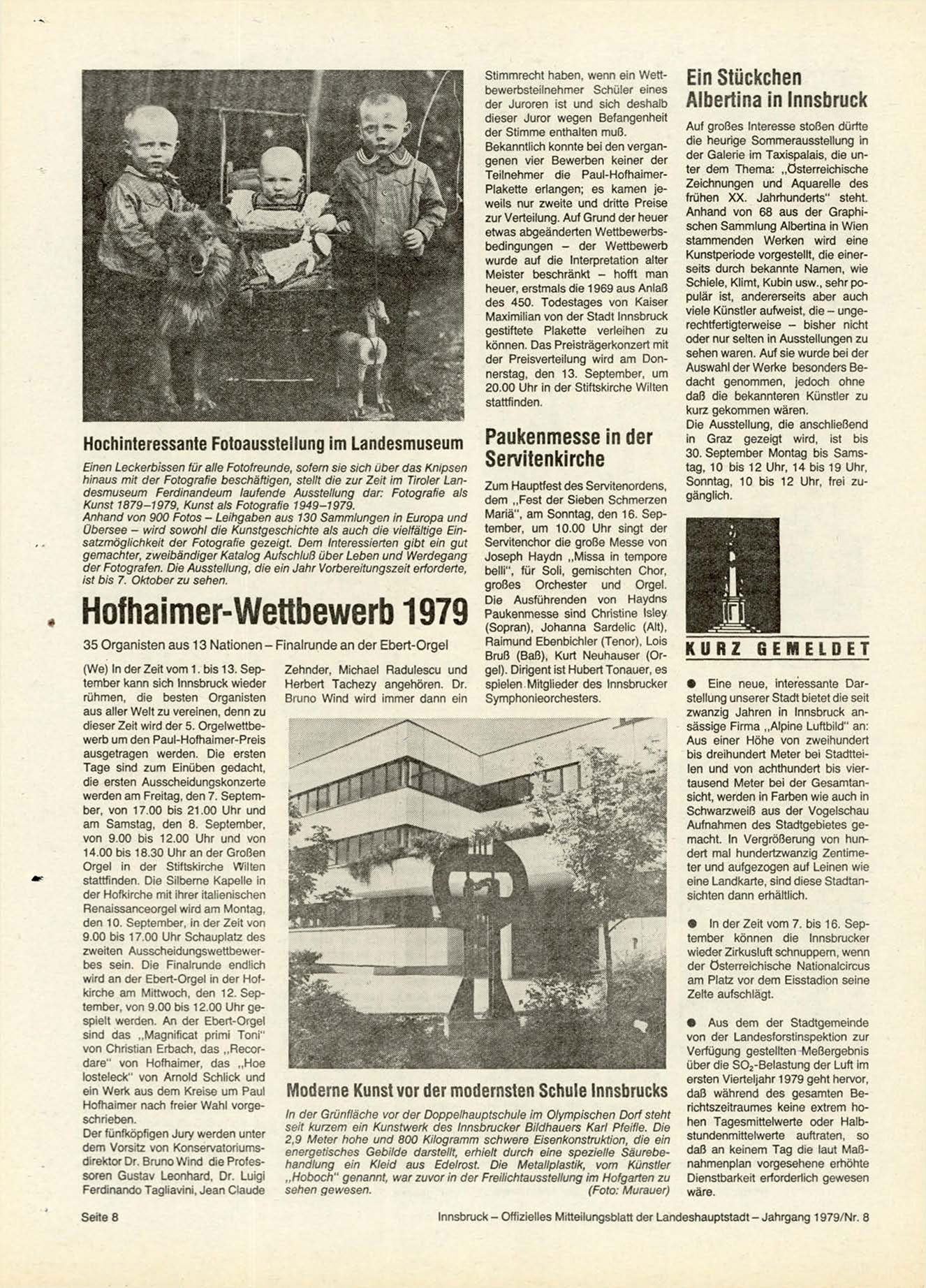 Innsbruck - Offizielles Mitteilungsblatt der Landeshauptstadt - Jahrgang 1979/Nr. 8