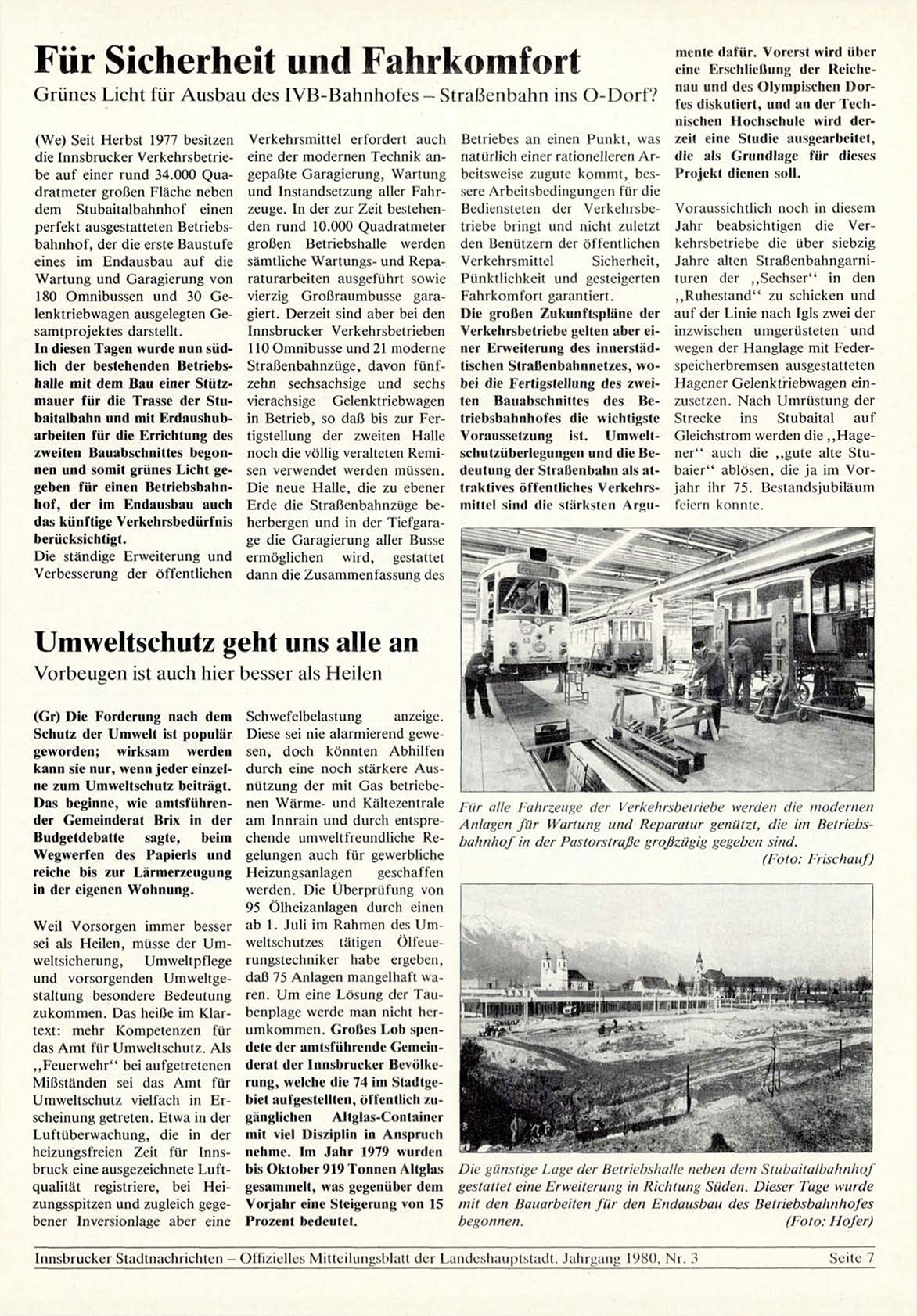 Innsbrucker Stadtnachrichten — Offizielles Mitteilungsblatt der Landeshauptstadt. Jahrgang 1980, Nr. 3
