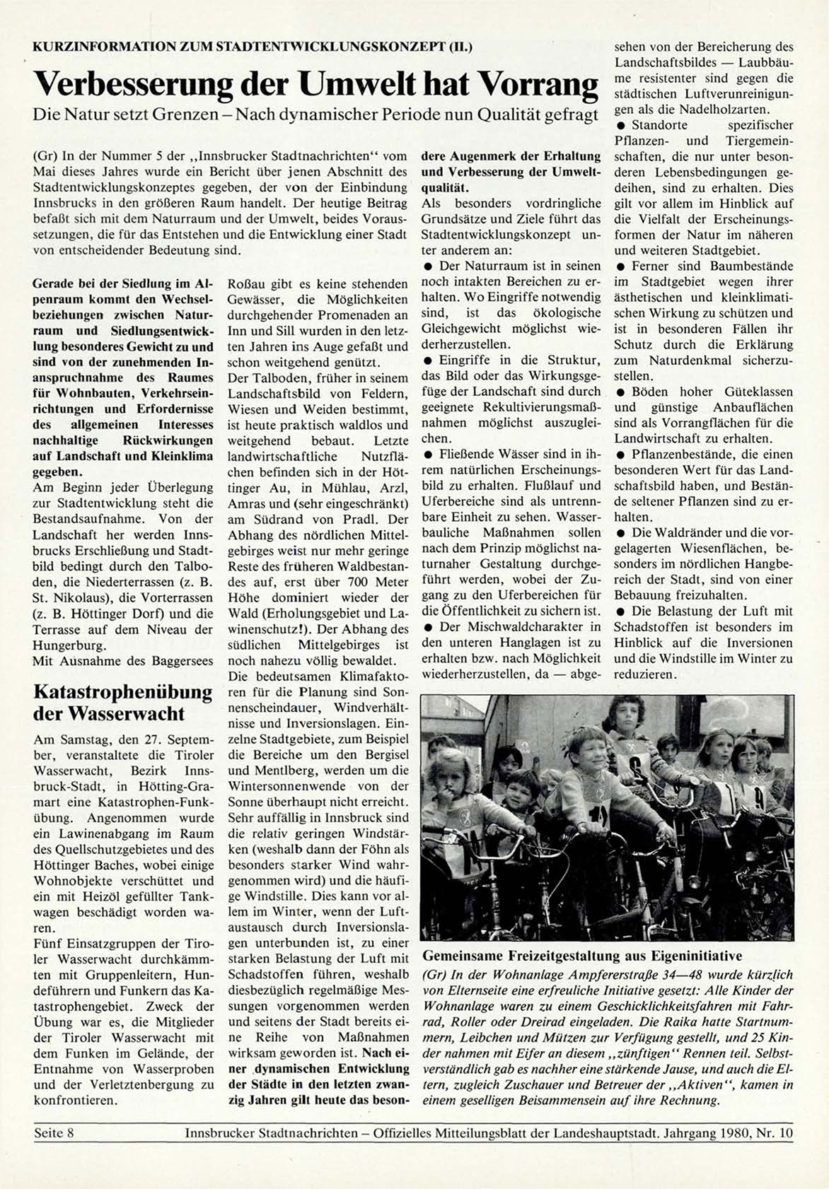 Innsbrucker Stadtnachrichten - Offizielles Mitteilungsblatt der Landeshauptstadt. Jahrgang 1980, N r . 10