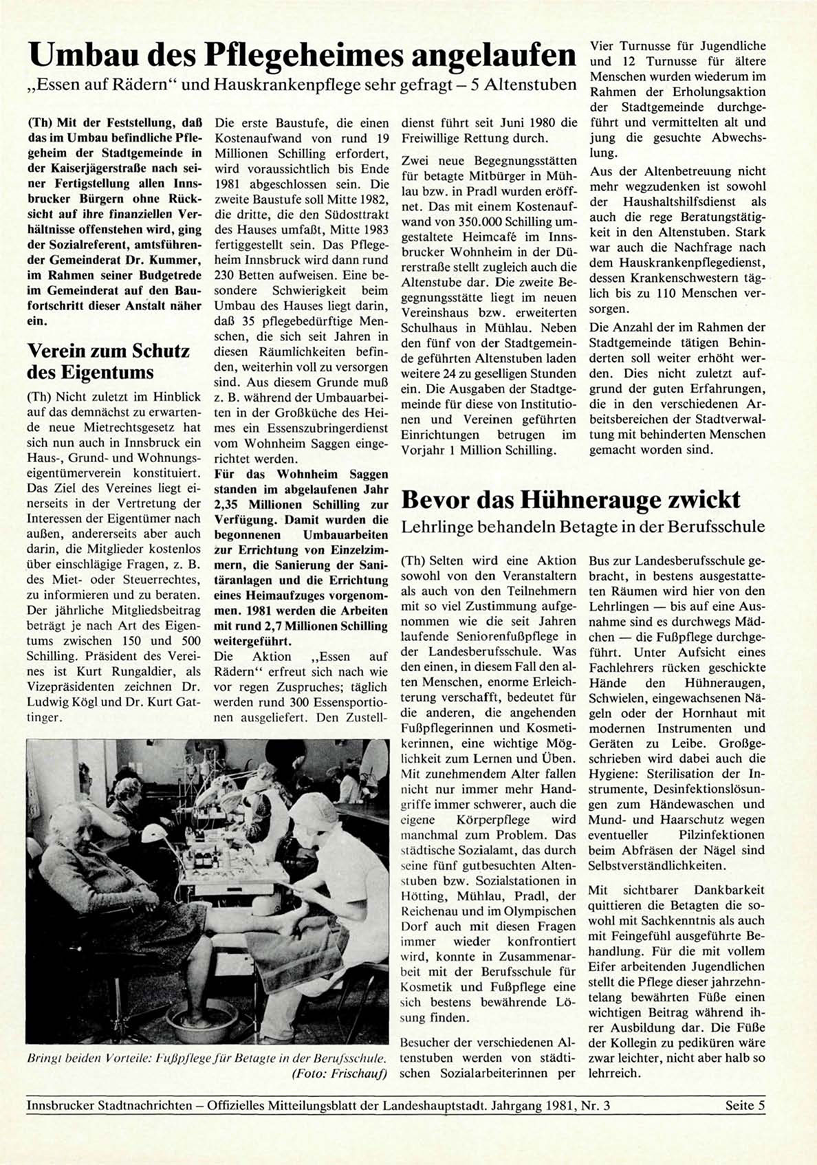 Innsbrucker Stadtnachrichten — Offizielles Mitteilungsblatt der Landeshauptstadt. Jahrgang 1981, Nr. 3