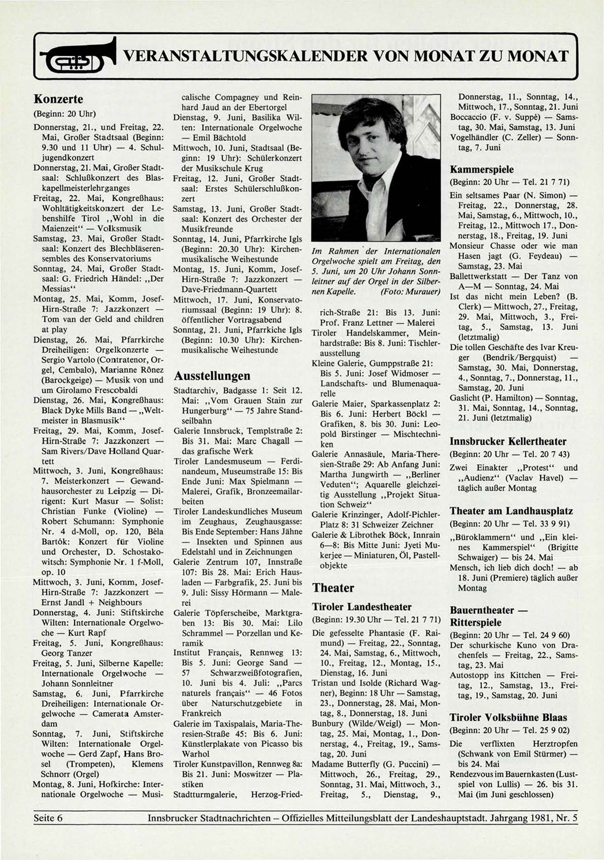 Innsbrucker Stadtnachrichten - Offizielles Mitteilungsblatt der Landeshauptstadt. Jahrgang 1981, Nr. 5