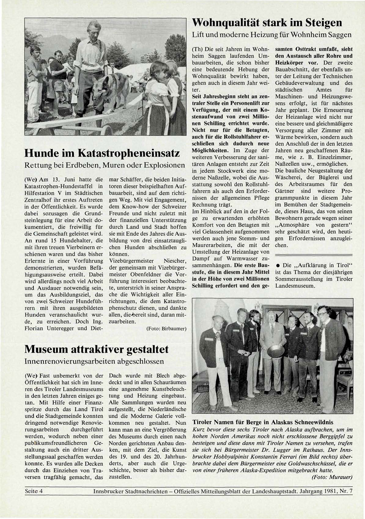 Innsbrucker Stadtnachrichten - Offizielles Mitteilungsblatt der Landeshauptstadt. Jahrgang 1981, Nr. 7