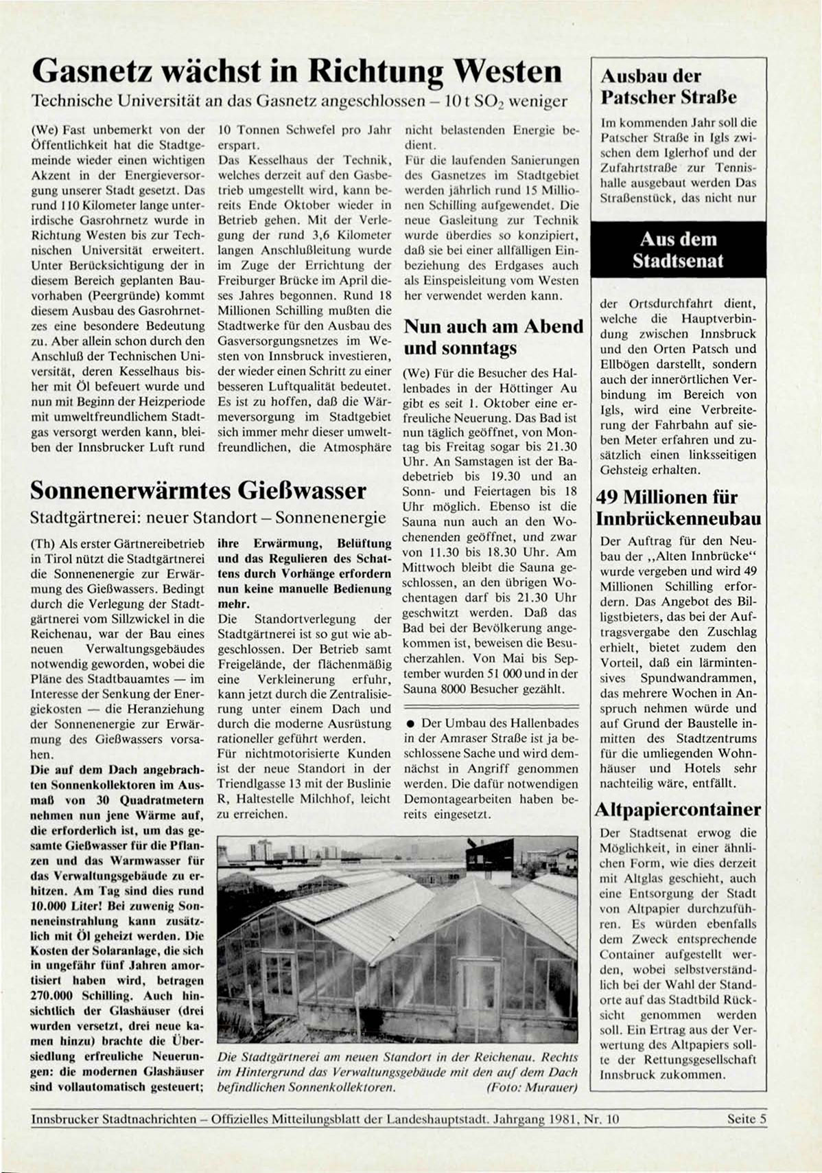 Innshruckcr Stadtnachrichten — Offizielles Mitteilungsblatt der Landeshauptstadt. Jahrgang 1981, Nr. 10