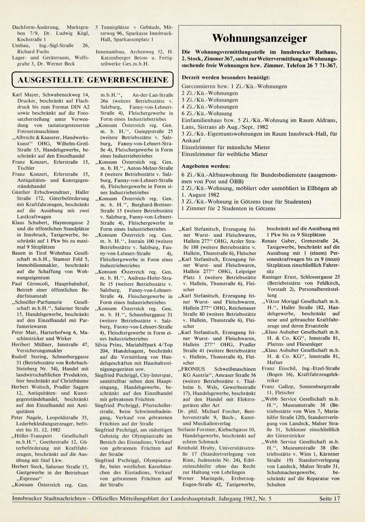 Innsbrucker Stadtnachrichten - Offizielles Mitteilungsblatt der Landeshauptstadt. Jahrgang 1982, Nr. 5