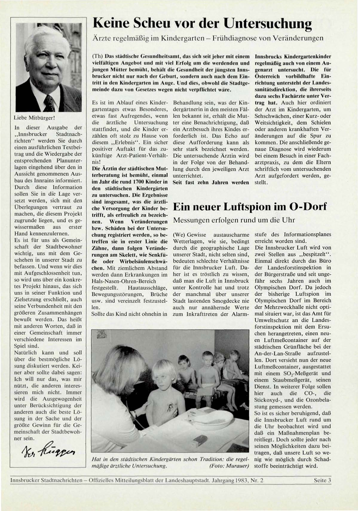 Innsbrucker Stadtnachrichten - Offizielles Mitteilungsblatt der Landeshauptstadt. Jahrgang 1983, Nr. 2