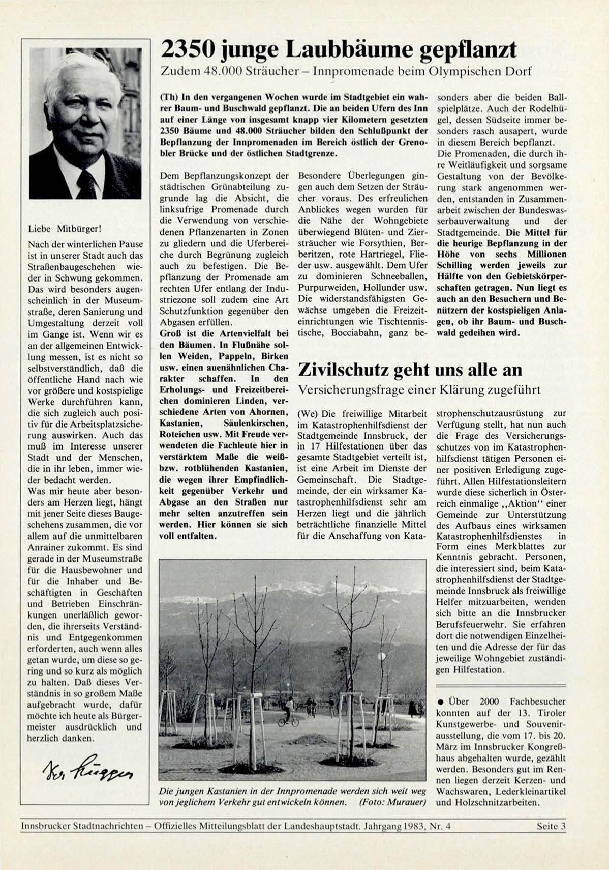 I n n s b r u c k e r S t a d t n a c h r i c h t e n - O f f i z i e l l e s M i t t e i l u n g s b l a t t d e r L a n d e s h a u p t s t a d t . J a h r g a n g 1983,